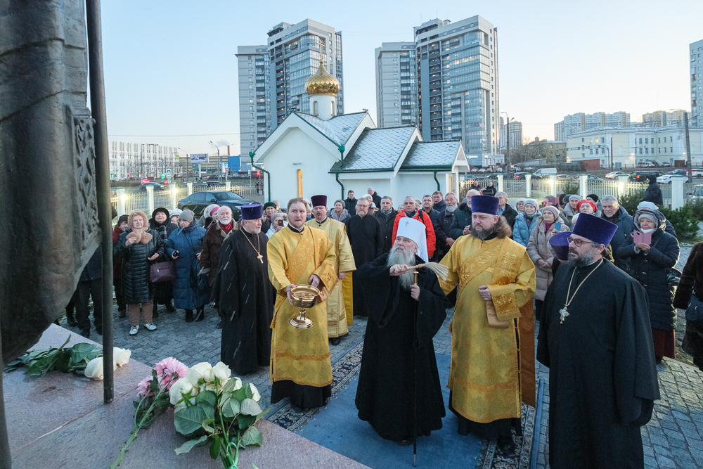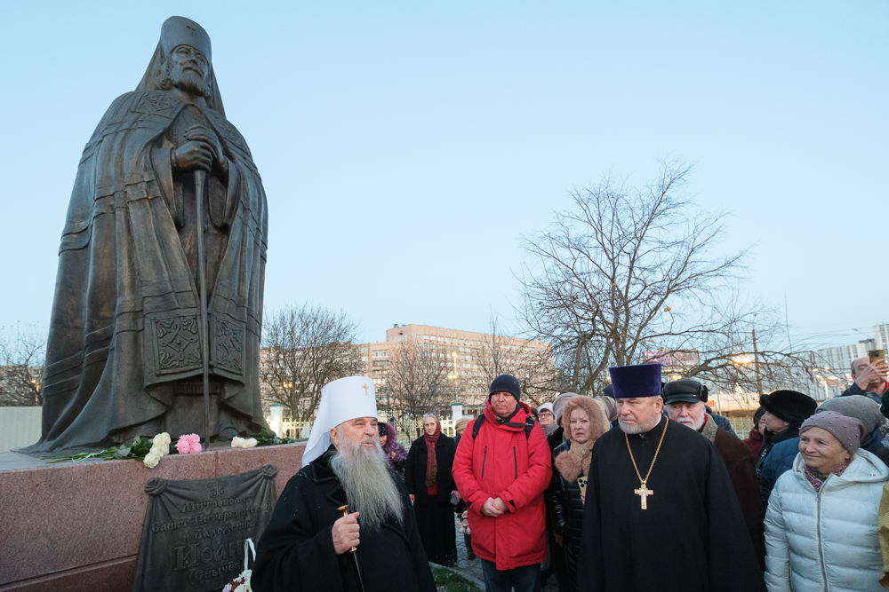 Перед богослужением владыка Варсонофий освятил памятник митрополиту Санкт-Петербургскому и Ладожскому Иоанну (Снычеву) на территории прихода. Он был создан скульптором Вячеславом Клыковым и планировался к установке в Самаре, где владыка много лет служил епископом Куйбышевским и Сызранским, но в итоге обрел свое место в Санкт-Петербурге.