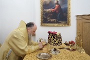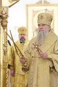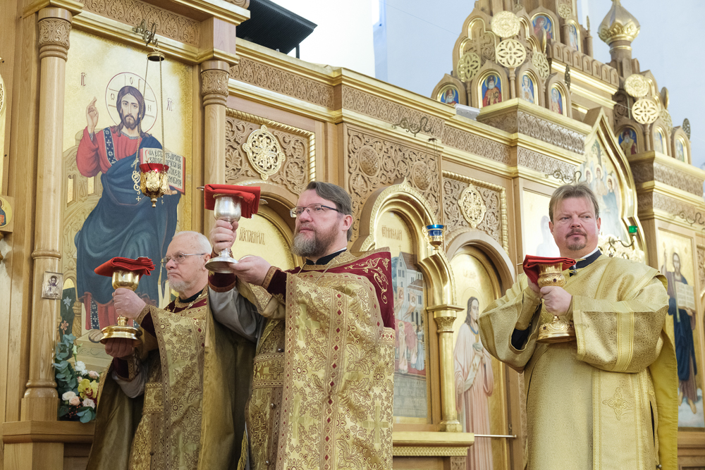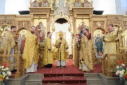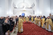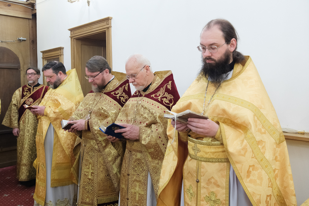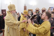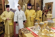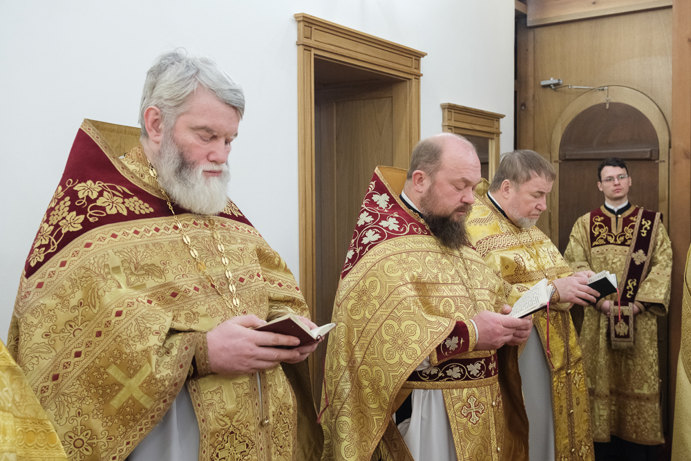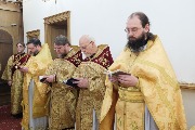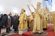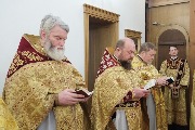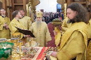 Его Высокопреосвященству сослужили епископ Кронштадтский Вениамин, секретарь епархиального управления протоиерей Сергий Куксевич, благочинный Адмиралтейского округа протоиерей Алексий Скляров, настоятель протоиерей Александр Гаврилов с клиром и другие священнослужители.