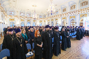 Епископ Петергофский Силуан отметил, что прошедший учебный год был 303-м годом существования духовных школ в Санкт-Петербурге. Владыка ректор привел цифры по академии. В частности, на очное обучение поступили в 2025 году 102 человека, на заочное - 92. Возрожденную стипендию митрополита Санкт-Петербургского и Ладожского получают 8 студентов.