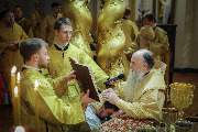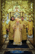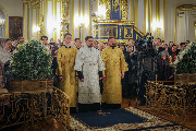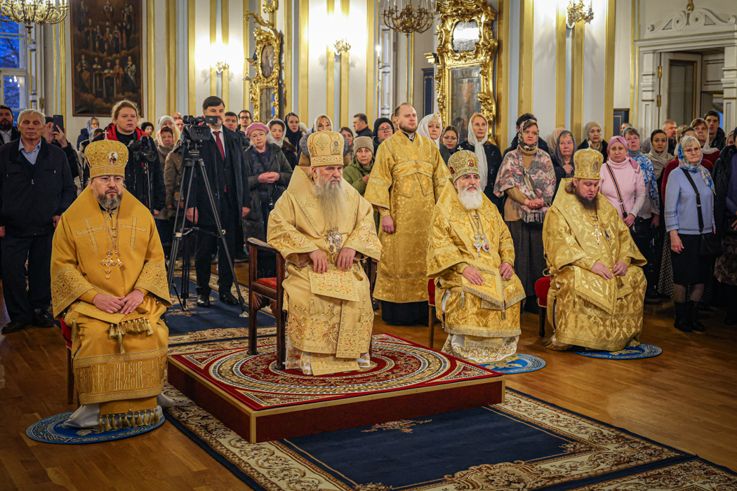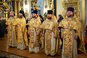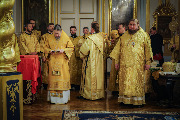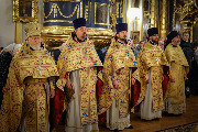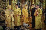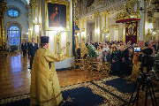Его Высокопреосвященству сослужили епископы Кронштадтский Вениамин, Тихвинский и Лодейнопольский Мстислав, Петергофский Силуан, секретарь епархиального управления протоиерей Сергий Куксевич, протоиерей Геннадий Бартов, благочинный Адмиралтейского округа, настоятель протоиерей Алексий Скляров с клиром, иерей Павел Ермошкин и другие священнослужители.