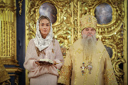 Храму была подарена икона Ксении Блаженной. Настоятелю был преподнесен крест с украшениями.