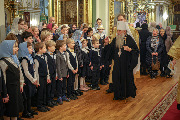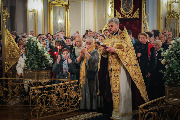 "Праведники имеют высокое дерзновение к Богу. Они молятся за всех, кто к ним обращается. Я думаю, что если у святых есть синодики, там записаны все ваши имена. И святитель Николай молится за вас, если вы к нему обращаетесь каждый день. А мы все обращаемся к нему в молитве, у всех дома есть его иконы. Сколько чудес он совершил! Не перечислить. Он всегда готов приходить на помощь. Будем брать пример с него. Он для нас образ смирения и кротости. Мы иногда смиряемся только в мыслях, а не на деле. Когда случай предоставится смириться, надо это делать по-настоящему. И так в любом добром деле. Можно мысленно раздавать богатство и достатки, но на деле никому ничего не давать. Получается, что в мыслях мы вроде щедрые, милосердные, сострадательные, а как доходит до дела, - жадные и не можем ничего никому дать. А надо все исполнять на деле. Этому учит святитель Николай. Он на деле исполнил Евангелие, заповеди Божии. Евангелие и путь заповедей Божиих мы должны написать в сердце. Это путь в Царствие Небесное. Но на этом пути надо быть смиренными, кроткими, любвеобильными, сострадательными, милосердными, готовыми и спешащими помочь ближним, нуждающимся. Поздравляю вас с праздником! Желаю помощи Божией по молитвам святителя Николая в трудах и заботах о вечном спасении!" - завершил проповедь митрополит Варсонофий.