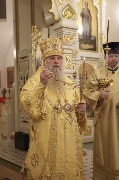 "Мы живем уже в Новом Завете. Верность Христу показали наши новомученики и исповедники. Когда пришла беда - революция на Русскую землю, - многие пошли в лагеря, тюрьмы, ссылки, были расстреляны и остались верными Христу. Это уже люди новозаветного времени. Они были в особой благодати. Мы должны брать пример со святых Ветхого Завета и Нового Завета, оставаться верными Христу до конца. В любых обстоятельствах надо быть верными Богу - исполнять Его волю, трудиться во славу Божию. Тогда все будет получаться, потому что Господь будет с нами и поможет в наших делах и трудах. А когда мы забываем Его, суетимся, что-то делаем без Бога, у нас ничего не выходит. Все будет пусто и кончится ничем. Когда же мы творим с Богом, у нас получаются такие замечательные храмы, как этот, где можно спасать себя и близких. Благодарю вас, отец Григорий, за труды, вы с помощниками это место облагородили. И оно стало святым, притягательным для людей", - завершил проповедь митрополит Варсонофий.