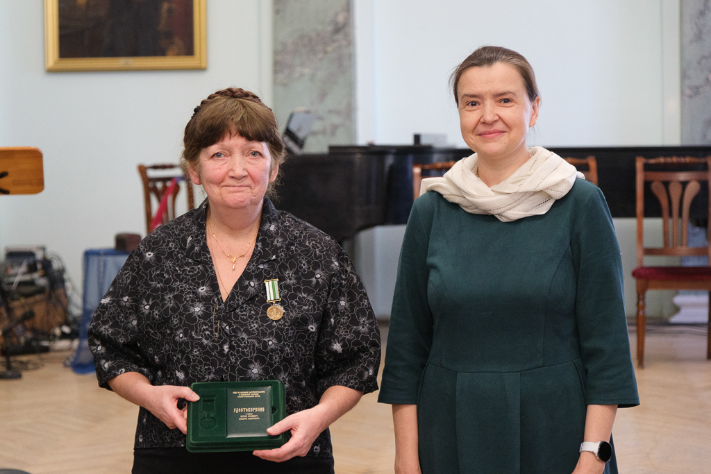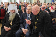 Представитель Синодального отдела по церковной благотворительности и социальному служению Вероника Леонтьева вручила награды отдела. Протоиерей Димитрий Симонов награжден медалью праведного Филарета Милостивого второй степени, иподиакон Александр Миронов и старейшая прихожанка Марина Меграбова - медалями праведного Филарета Милостивого третьей степени. Грамотой социального отдела награжден сурдопереводчик Виталий Такс.