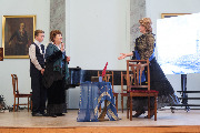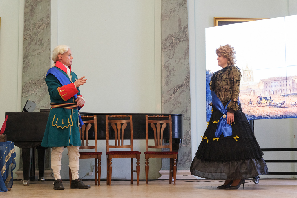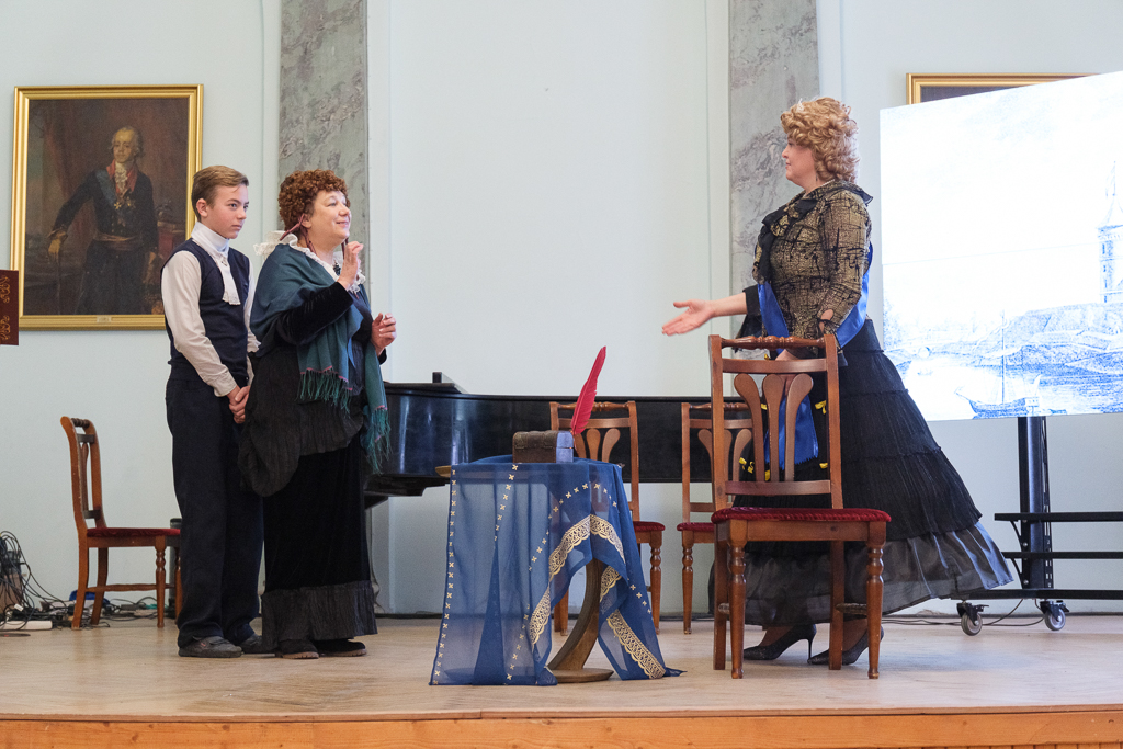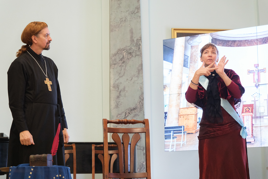 Была показана инсценировка об истории работы с глухими в Российской империи. Персонажами небольшого спектакля на русском жестовом языке (РЖЯ) стали императрица Мария Феодоровна и император Павел Первый, императрица Мария Феодоровна - супруга императора Александра Третьего, святой праведный Иоанн Кронштадтский и известный петербургский фотограф Карл Булла.