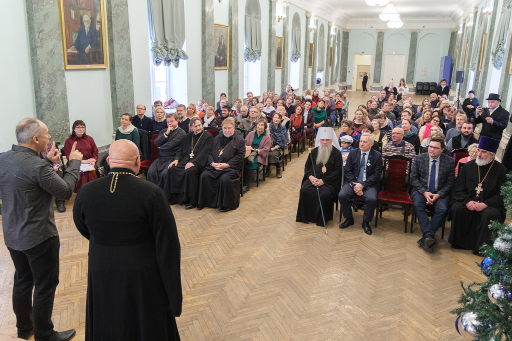 Концерт по случаю 25-летия общины глухих состоялся 28 декабря в Мраморном зале РГПУ имени Герцена после Божественной литургии, которую совершил в университетском храме апостолов Петра и Павла митрополит Санкт-Петербургский и Ладожский Варсонофий.