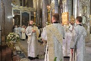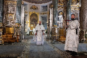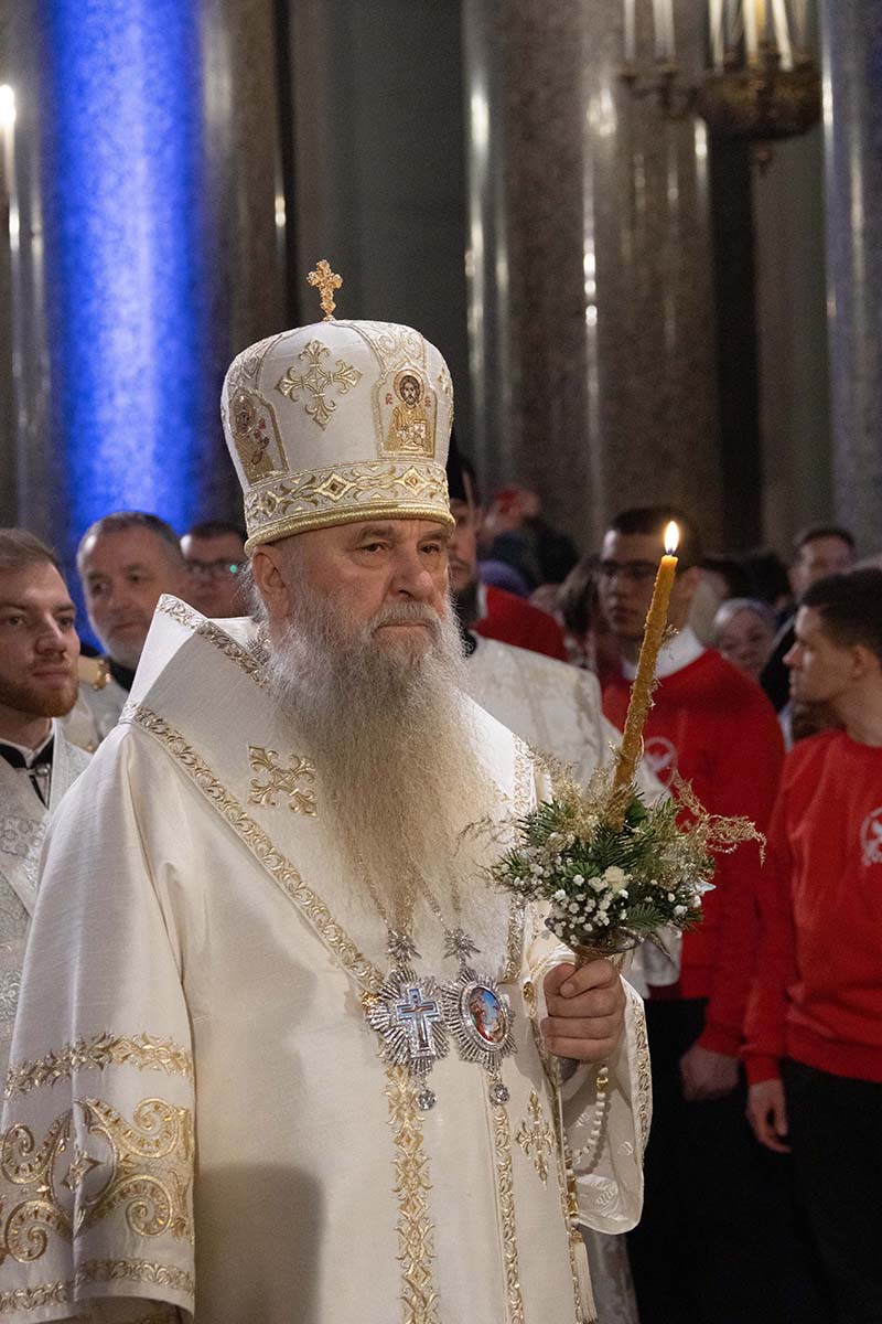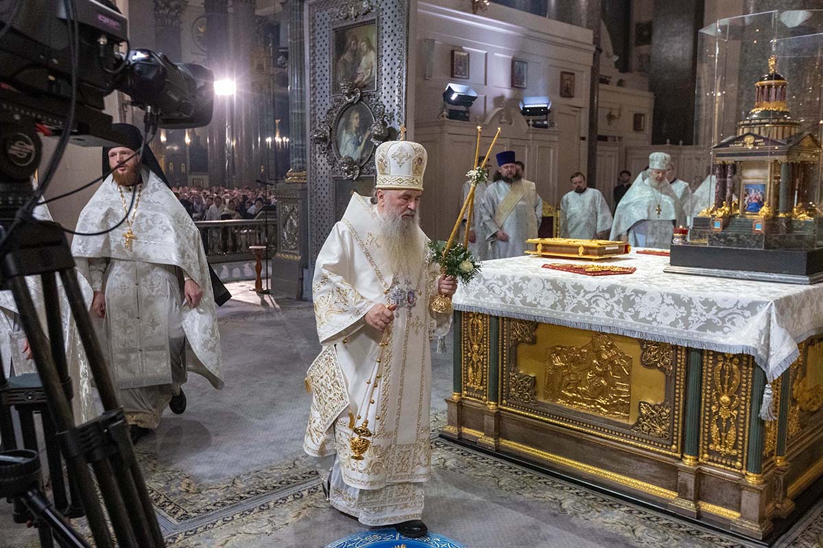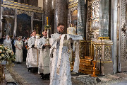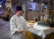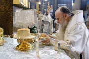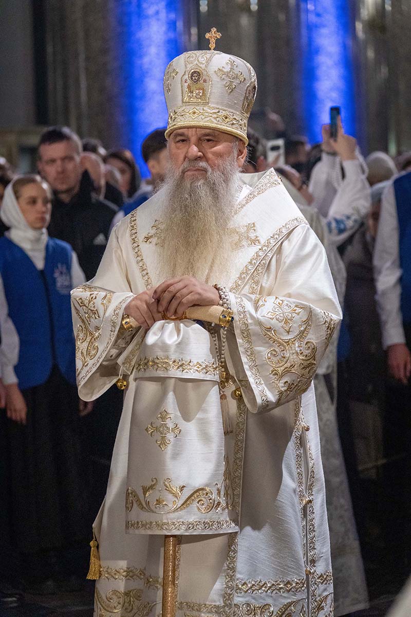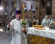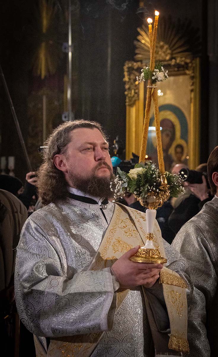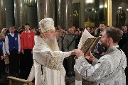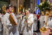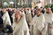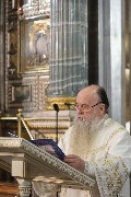 По запричастном стихе поздравление правящего архиерея клирикам, монашествующим и мирянам митрополии прочитал протоиерей Сергий Куксевич.