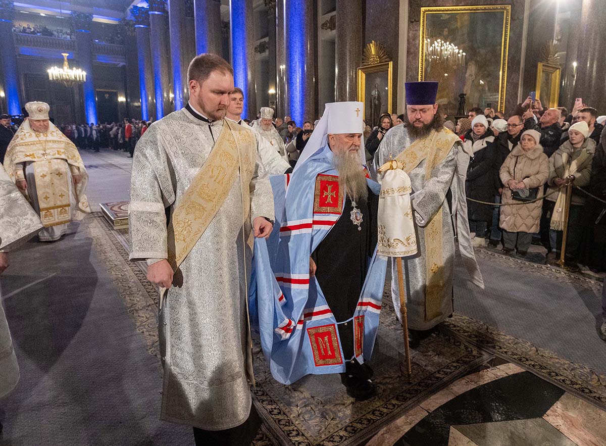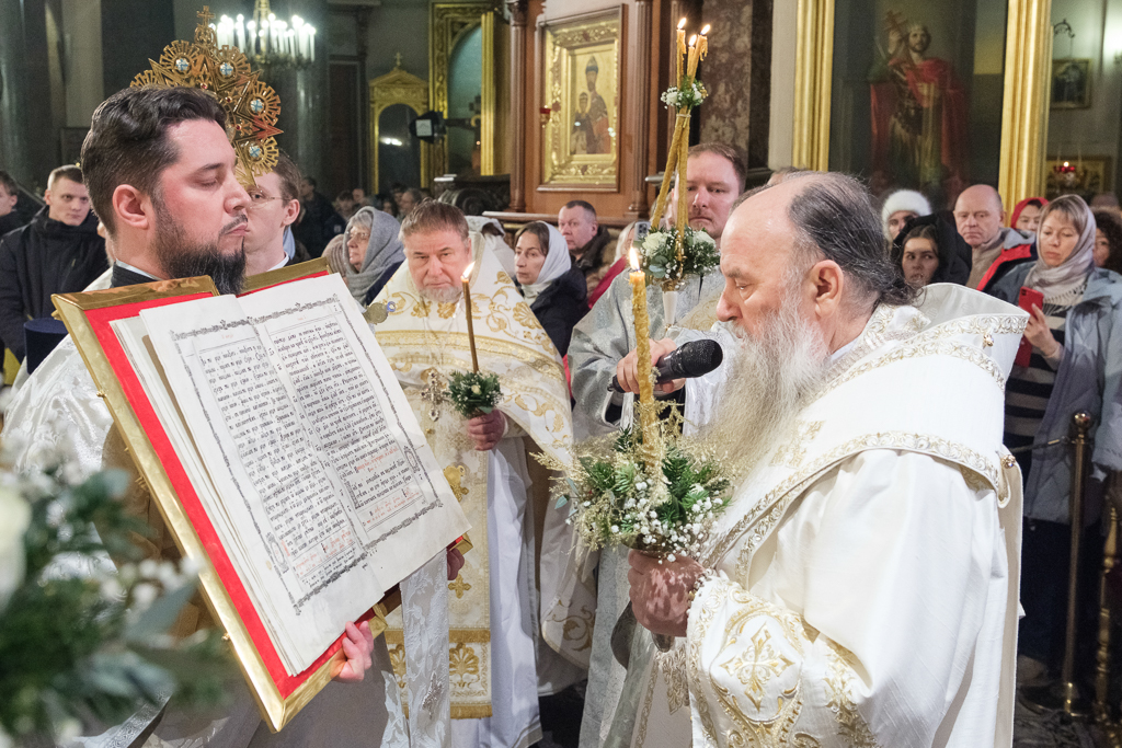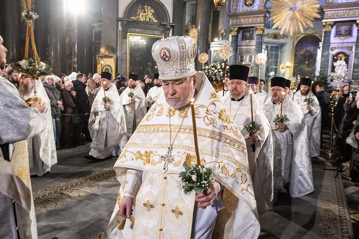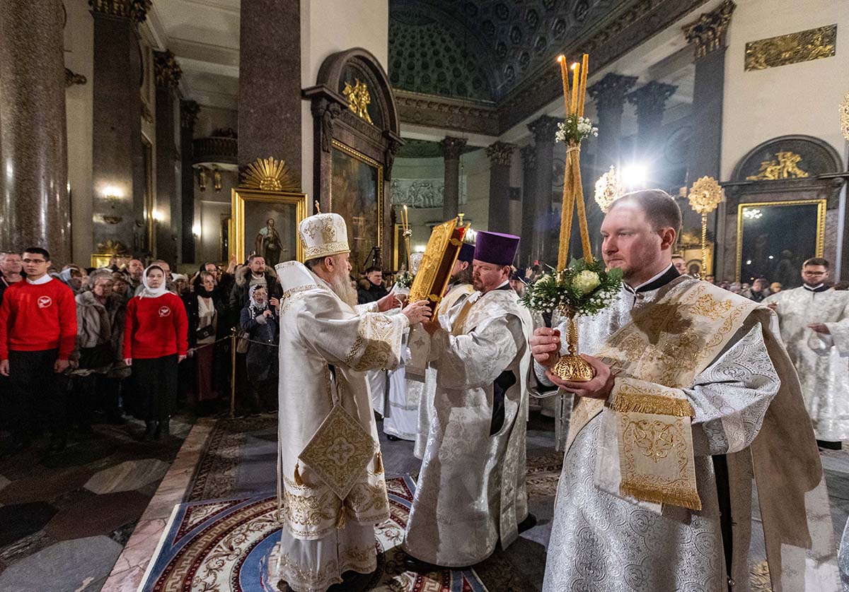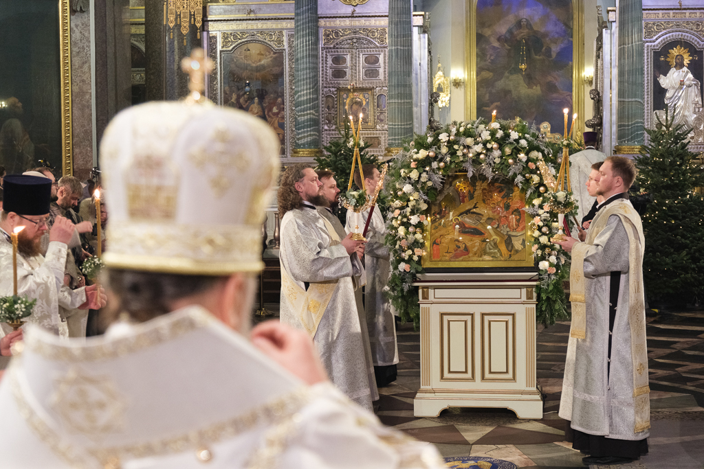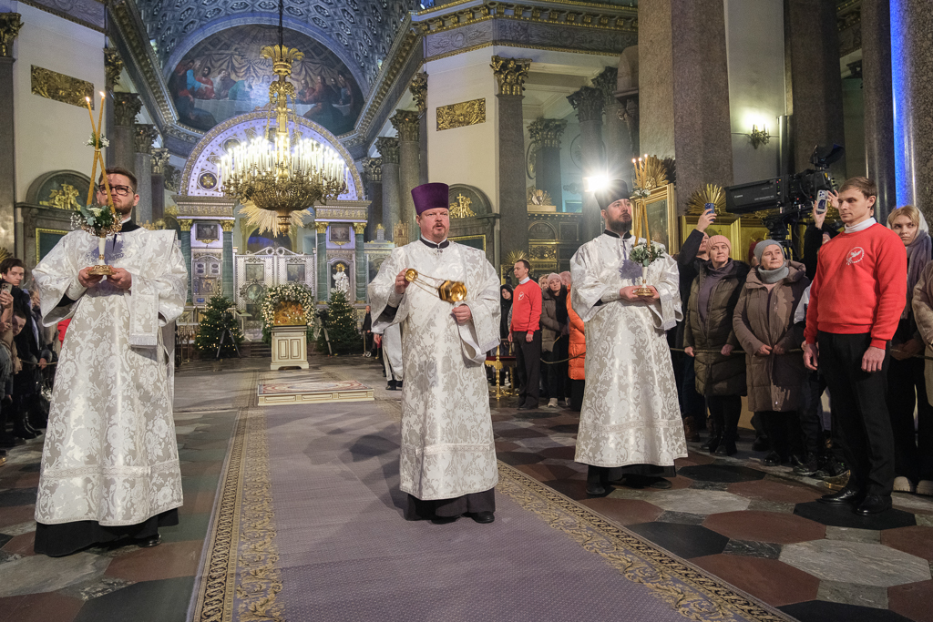 В ночь с 6 на 7 января, праздник Рождества Христова, митрополит Санкт-Петербургский и Ладожский Варсонофий возглавил великое повечерие, утреню и Божественную литургию в Казанском кафедральном соборе.