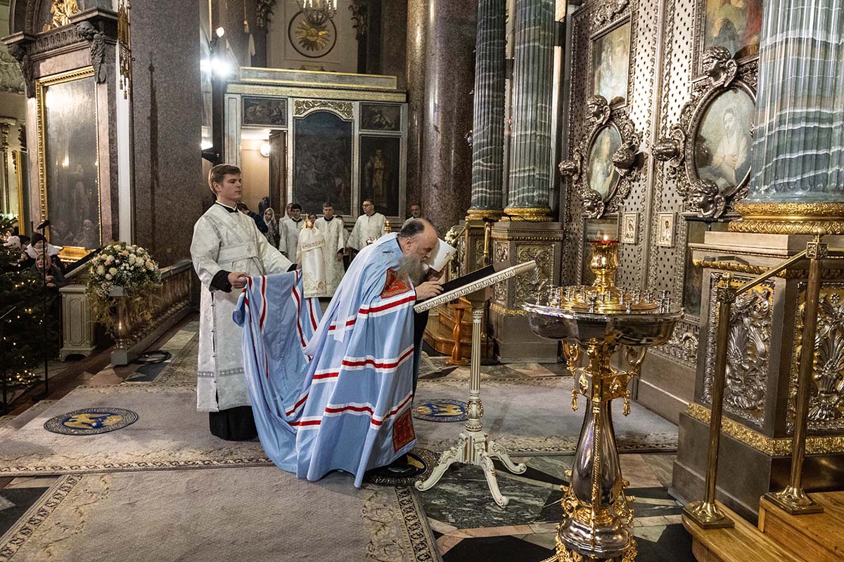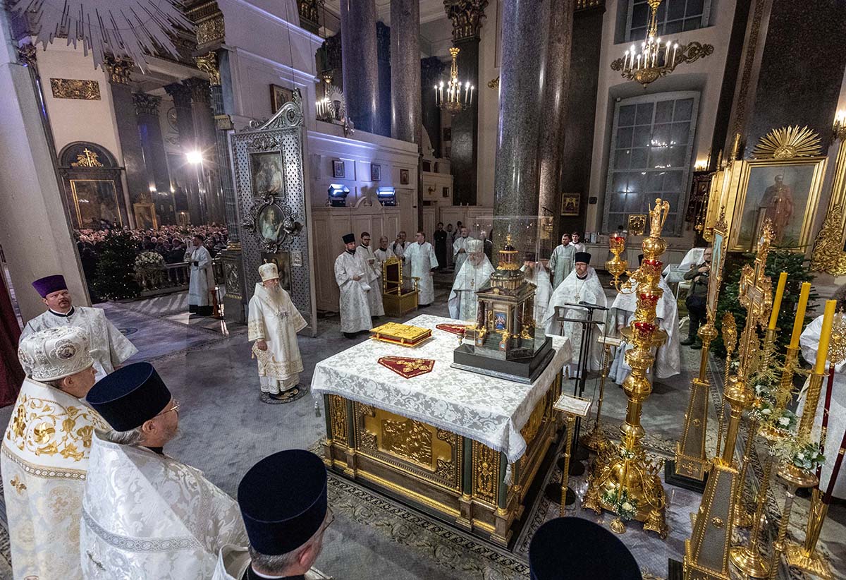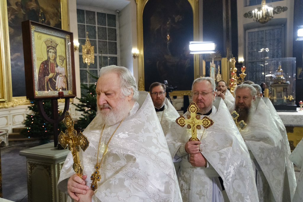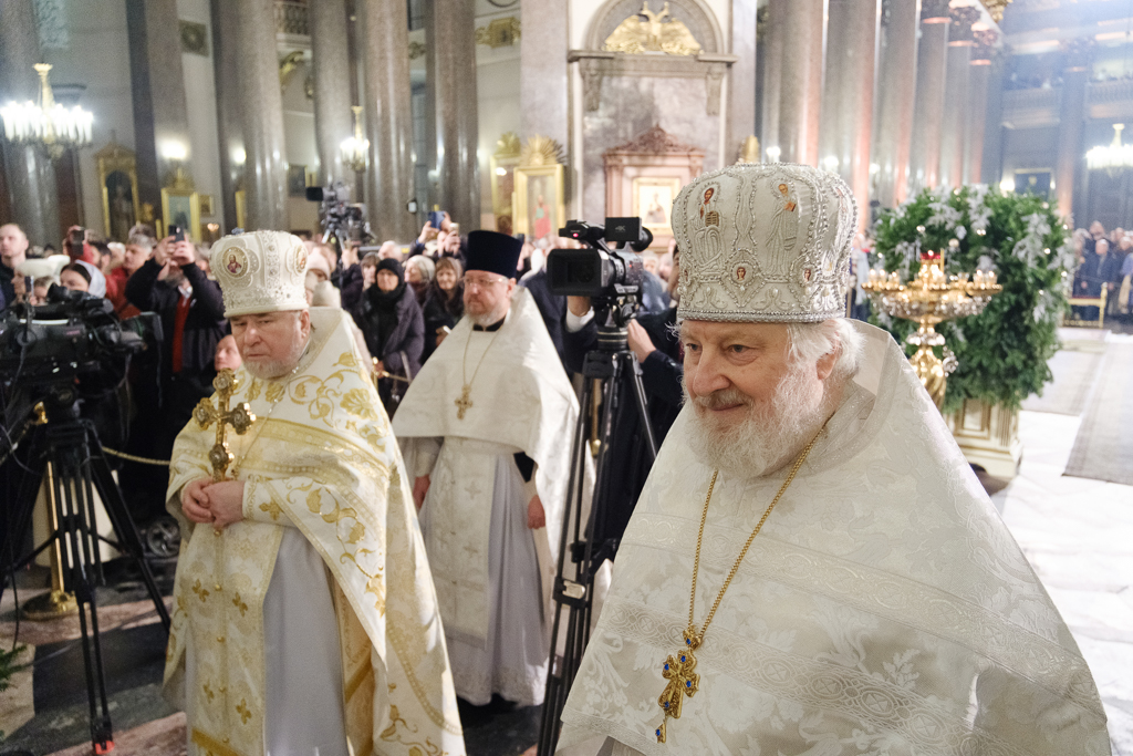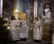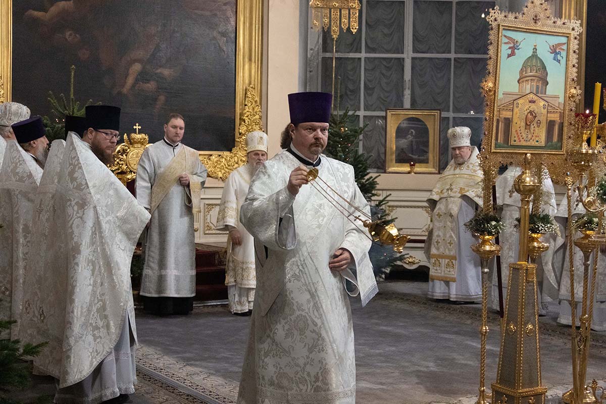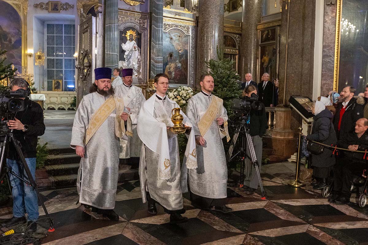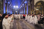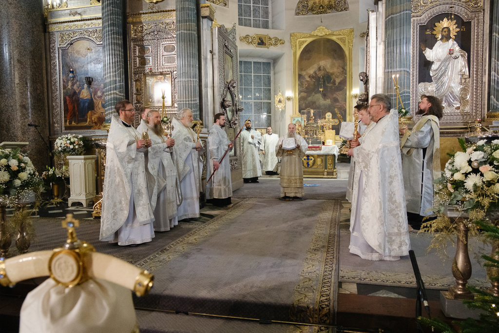 В ночь с 6 на 7 января, праздник Рождества Христова, митрополит Санкт-Петербургский и Ладожский Варсонофий возглавил великое повечерие, утреню и Божественную литургию в Казанском кафедральном соборе.
