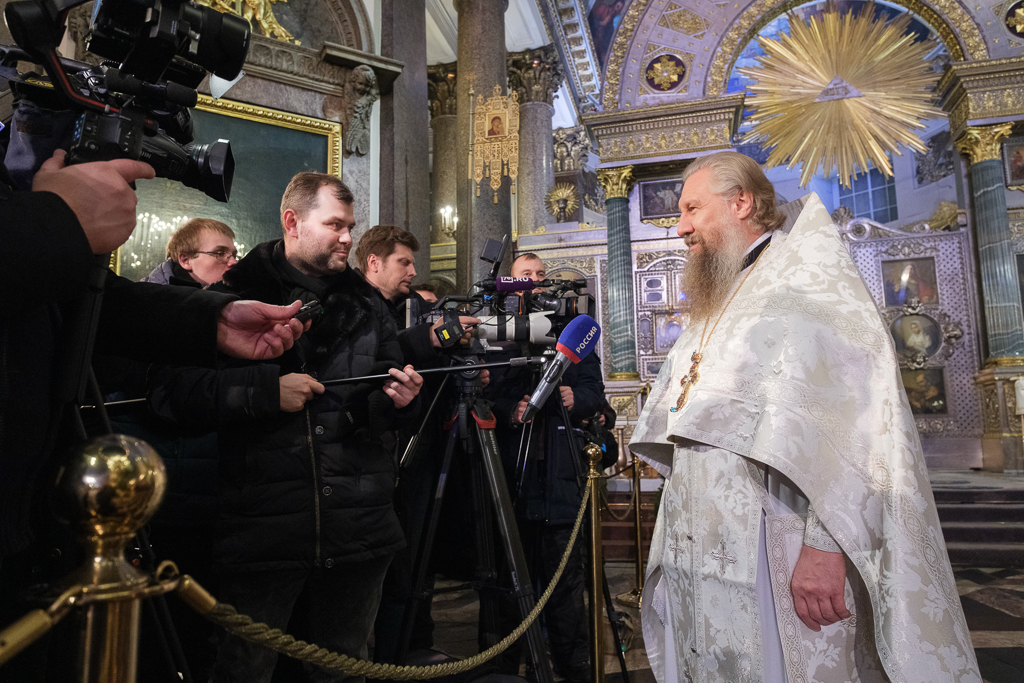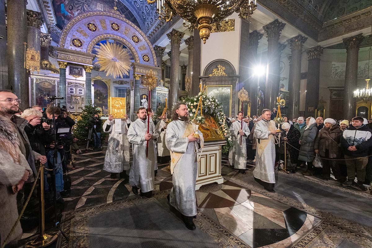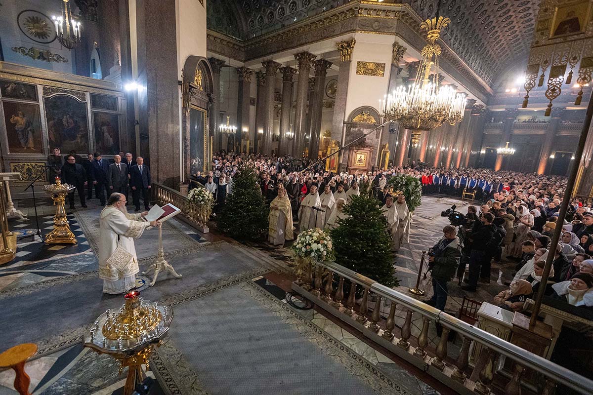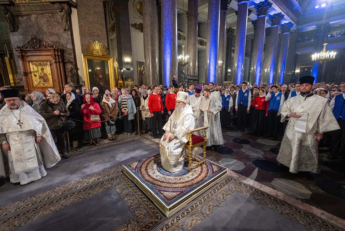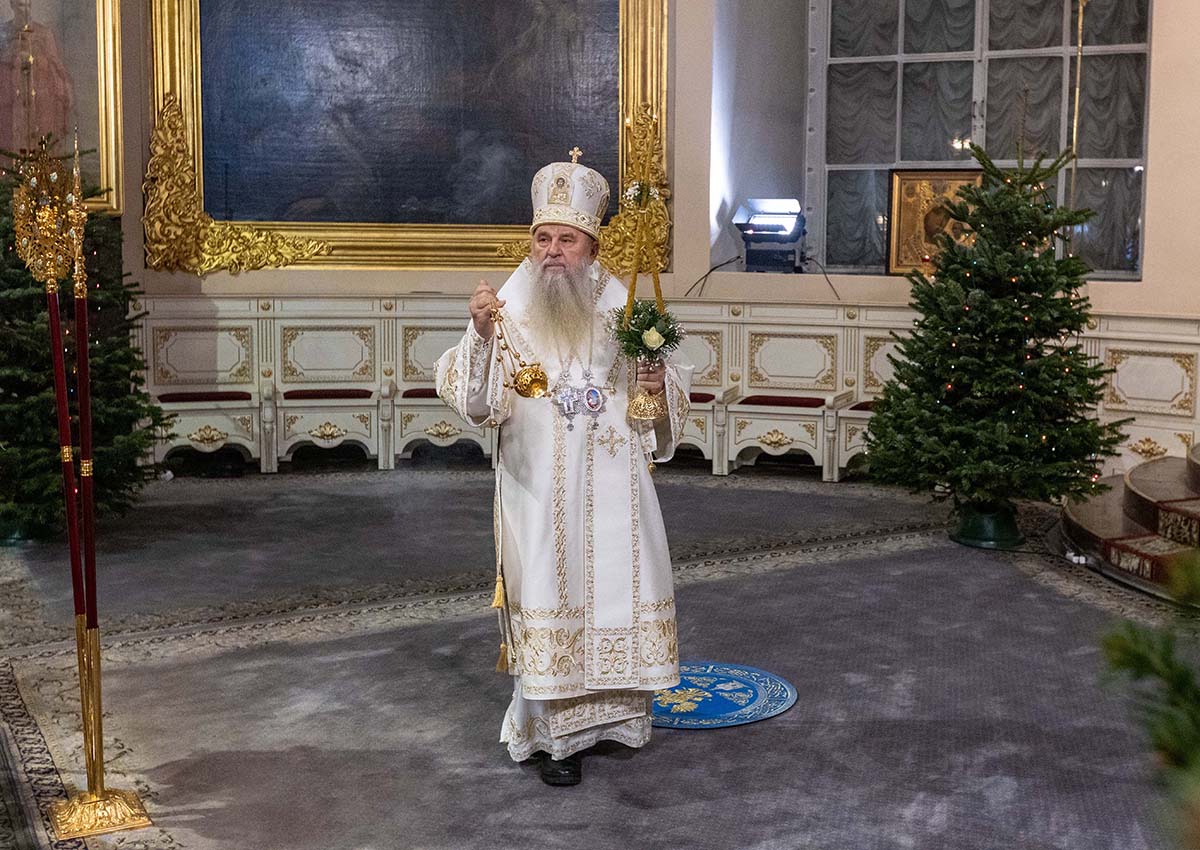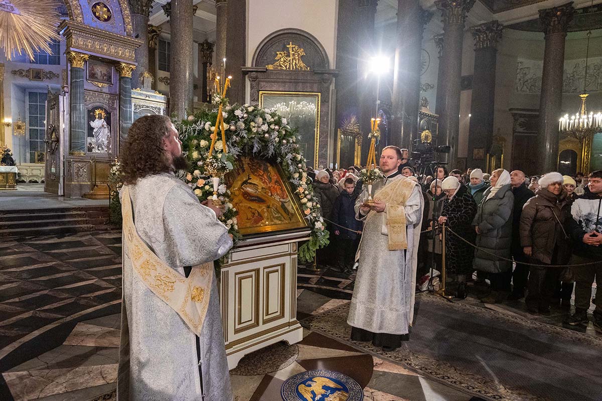 В ночь с 6 на 7 января, праздник Рождества Христова, митрополит Санкт-Петербургский и Ладожский Варсонофий возглавил великое повечерие, утреню и Божественную литургию в Казанском кафедральном соборе.