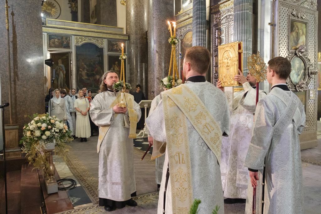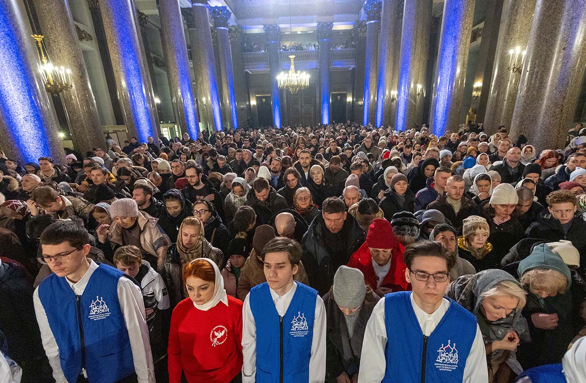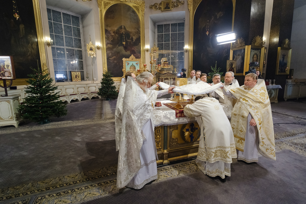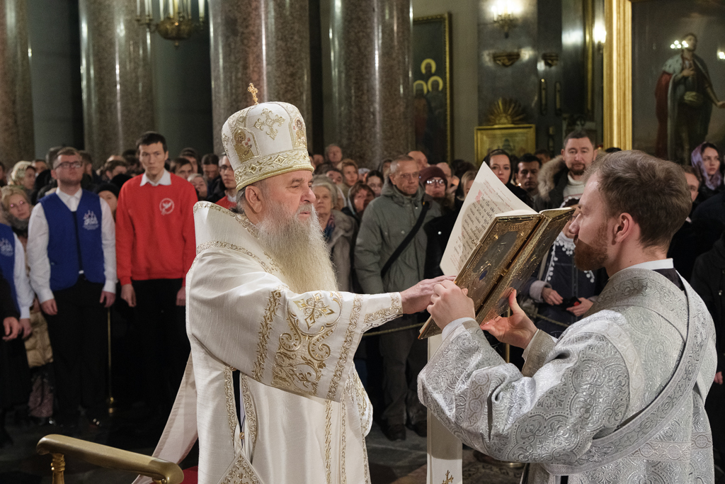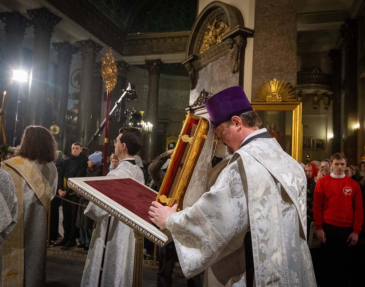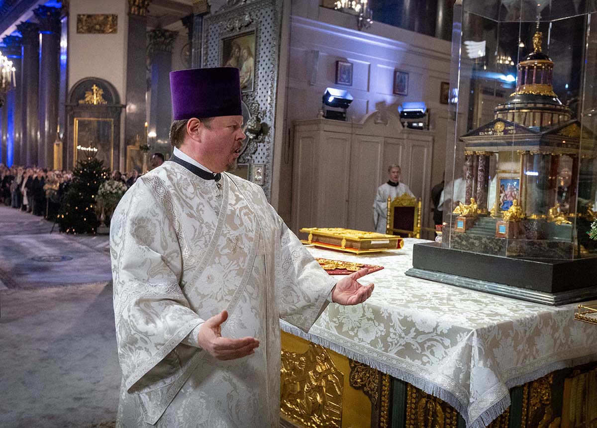 В ночь с 6 на 7 января, праздник Рождества Христова, митрополит Санкт-Петербургский и Ладожский Варсонофий возглавил великое повечерие, утреню и Божественную литургию в Казанском кафедральном соборе.