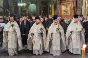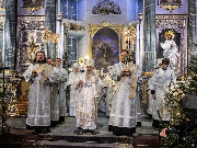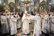 Его Высокопреосвященству сослужили секретарь епархиального управления протоиерей Сергий Куксевич, протоиерей Николай Преображенский, ключарь протоиерей Андрей Герасимов, председатель приходского совета протоиерей Александр Пашков, клир собора и другие священнослужители.