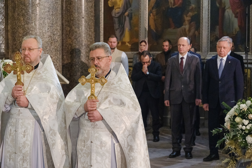 Среди молящихся были губернатор Александр Беглов, другие представители власти.