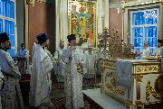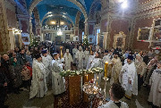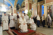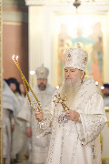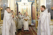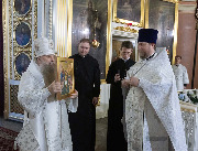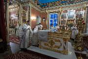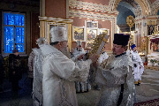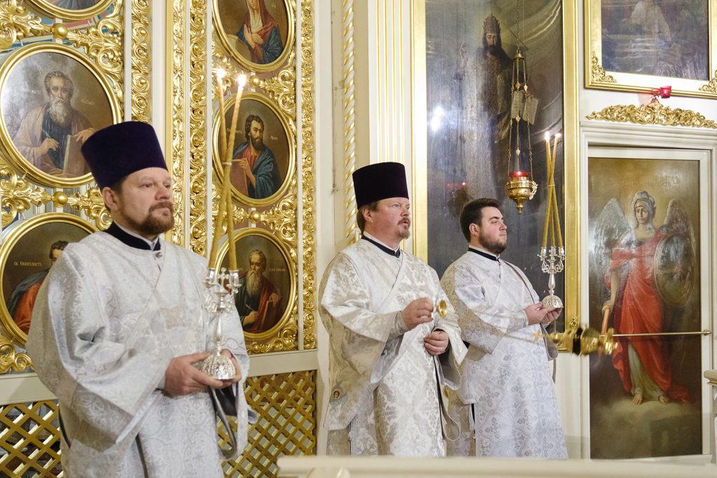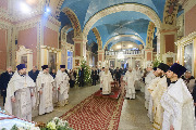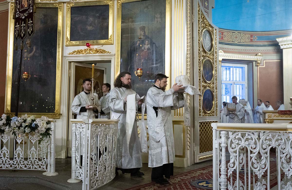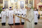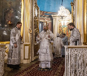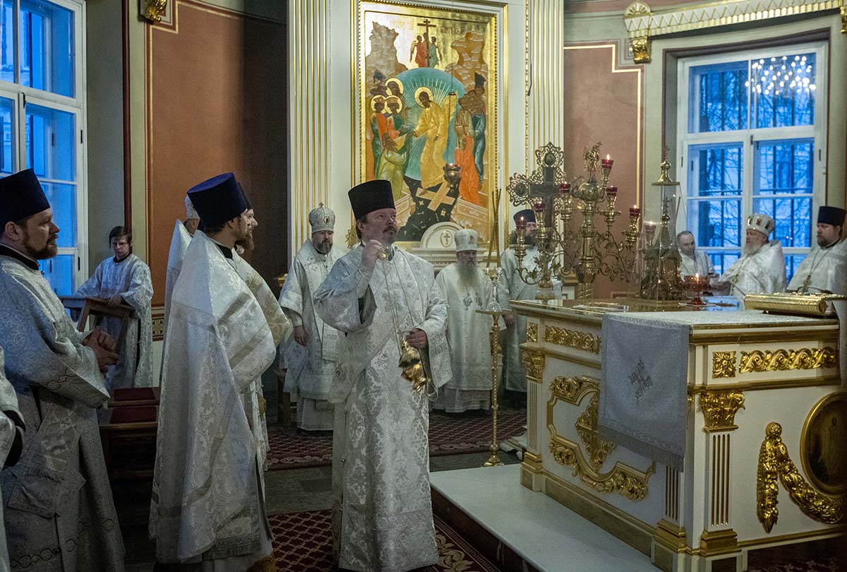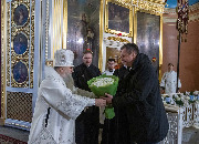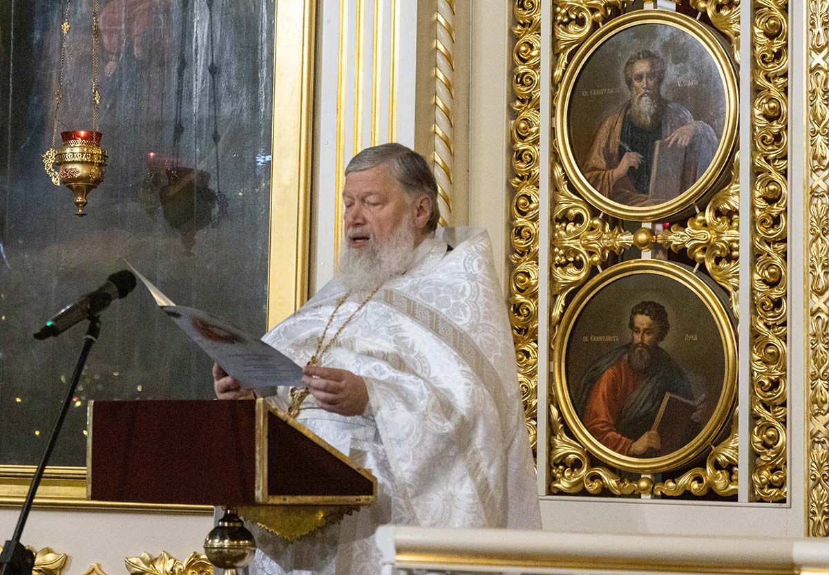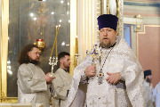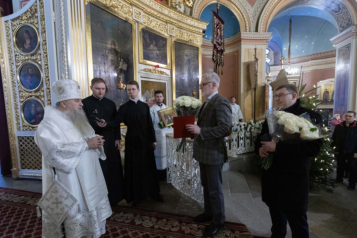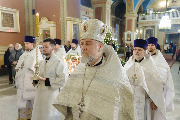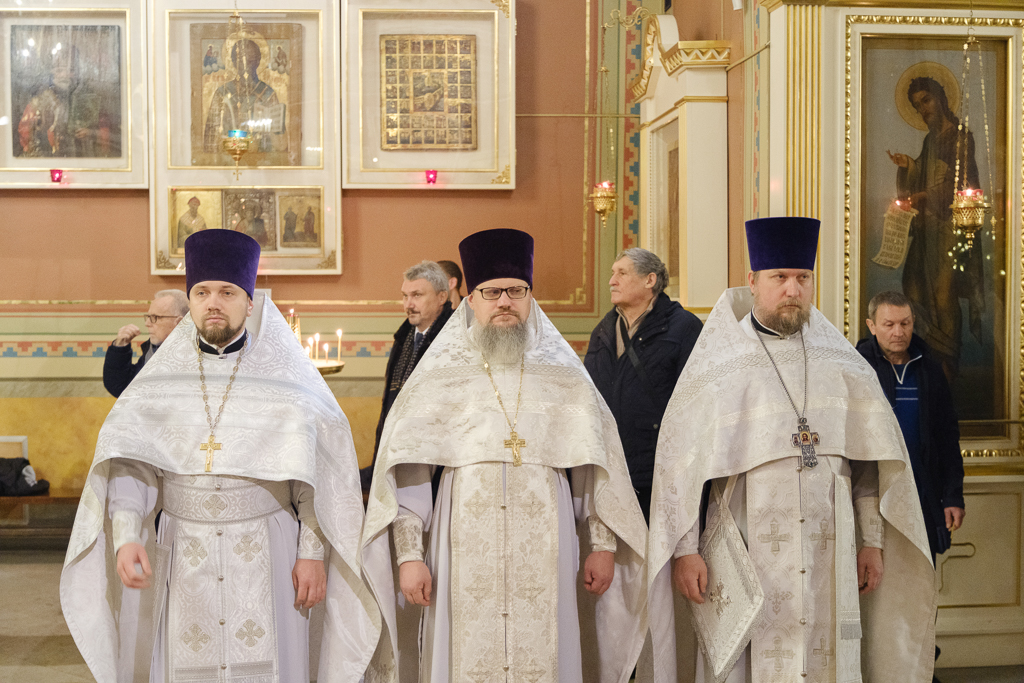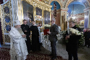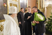 Его Высокопреосвященству сослужили епископ Кронштадтский Вениамин, архимандрит Александр (Арва), секретарь епархиального управления Выборгской епархии протоиерей Игорь Аксенов, клир собора и другие священнослужители.
