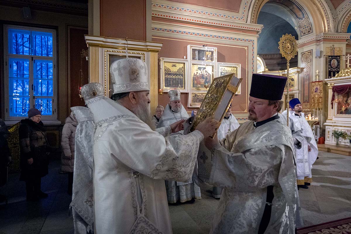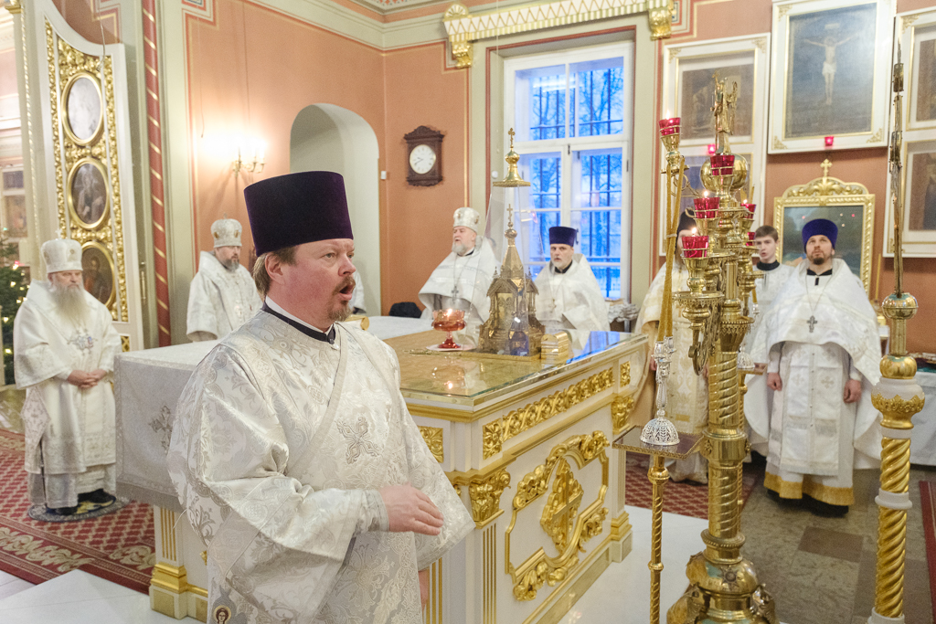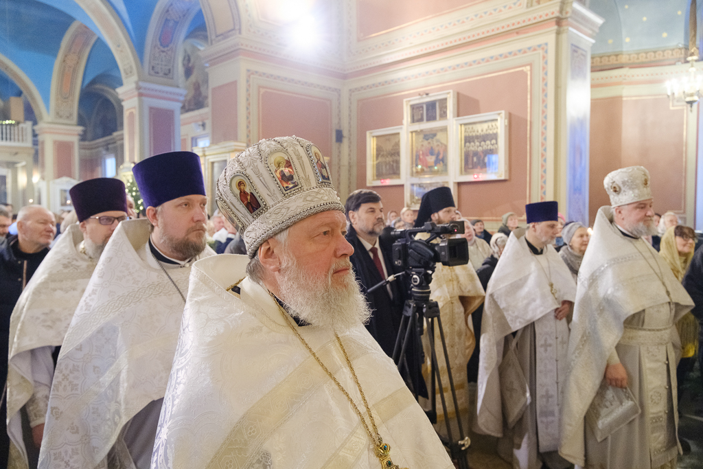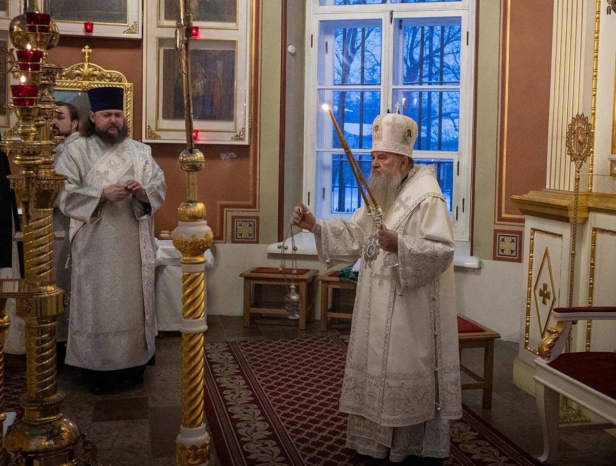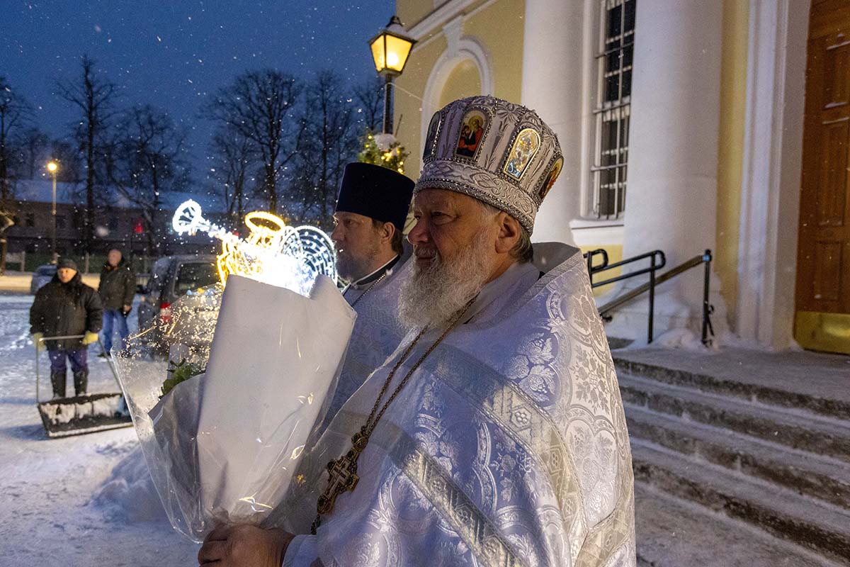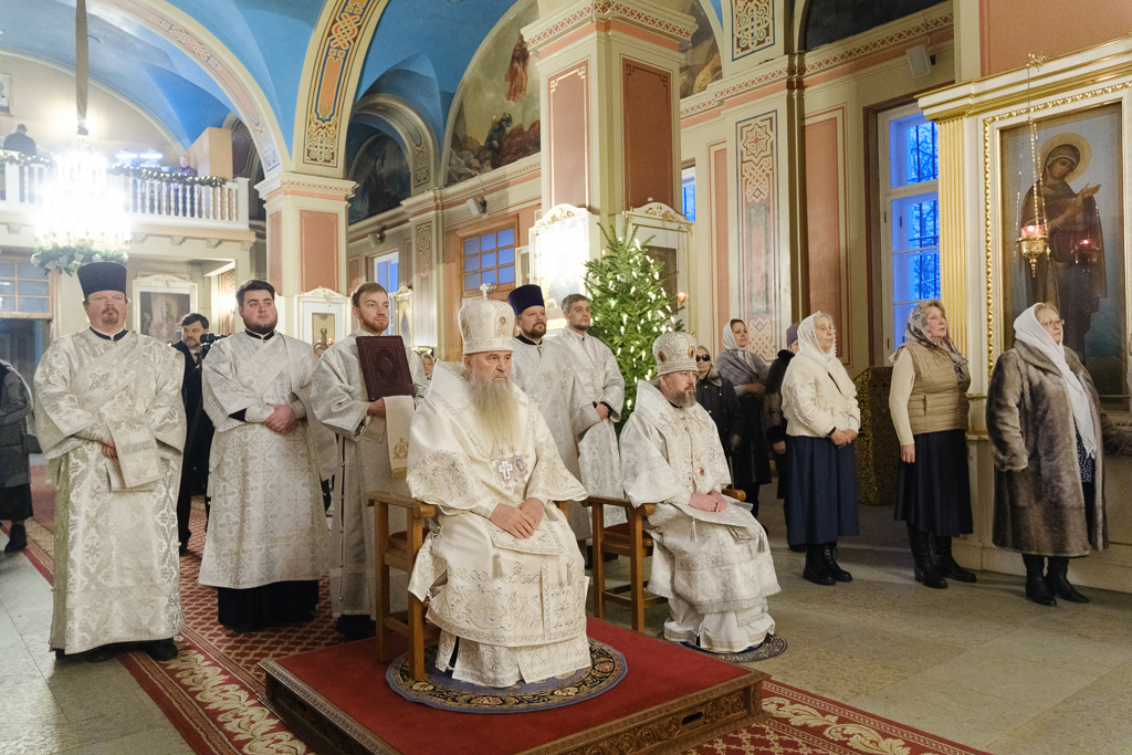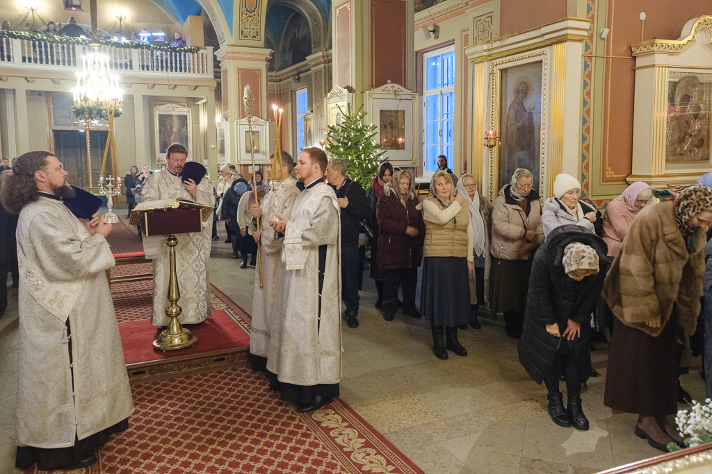 В Неделю по Рождестве Христовом, мучеников младенцев Вифлеемских, 11 января, глава Санкт-Петербургской митрополии, временно управляющий Выборгской епархией, митрополит Санкт-Петербургский и Ладожский Варсонофий совершил Божественную литургию в Спасо-Преображенском соборе Выборга.