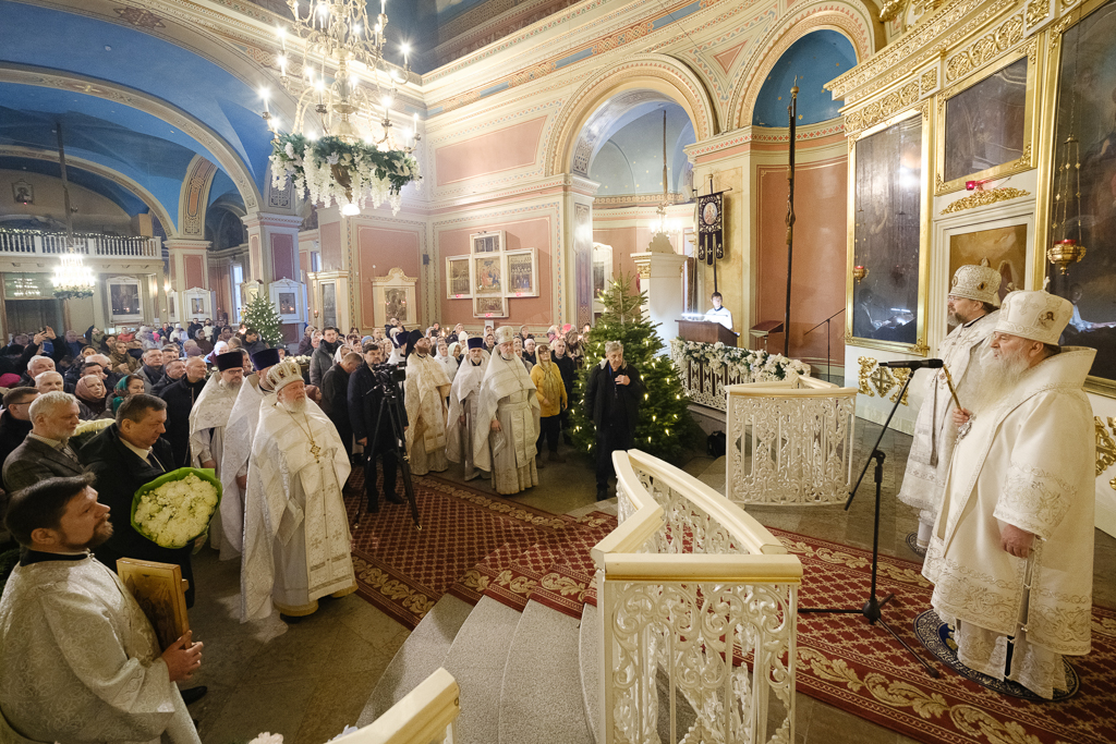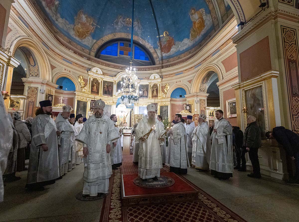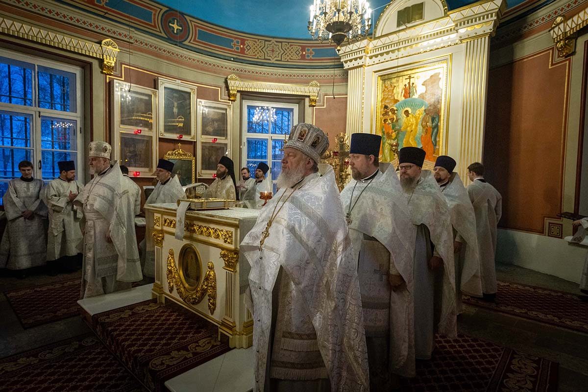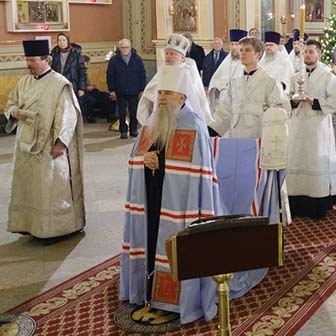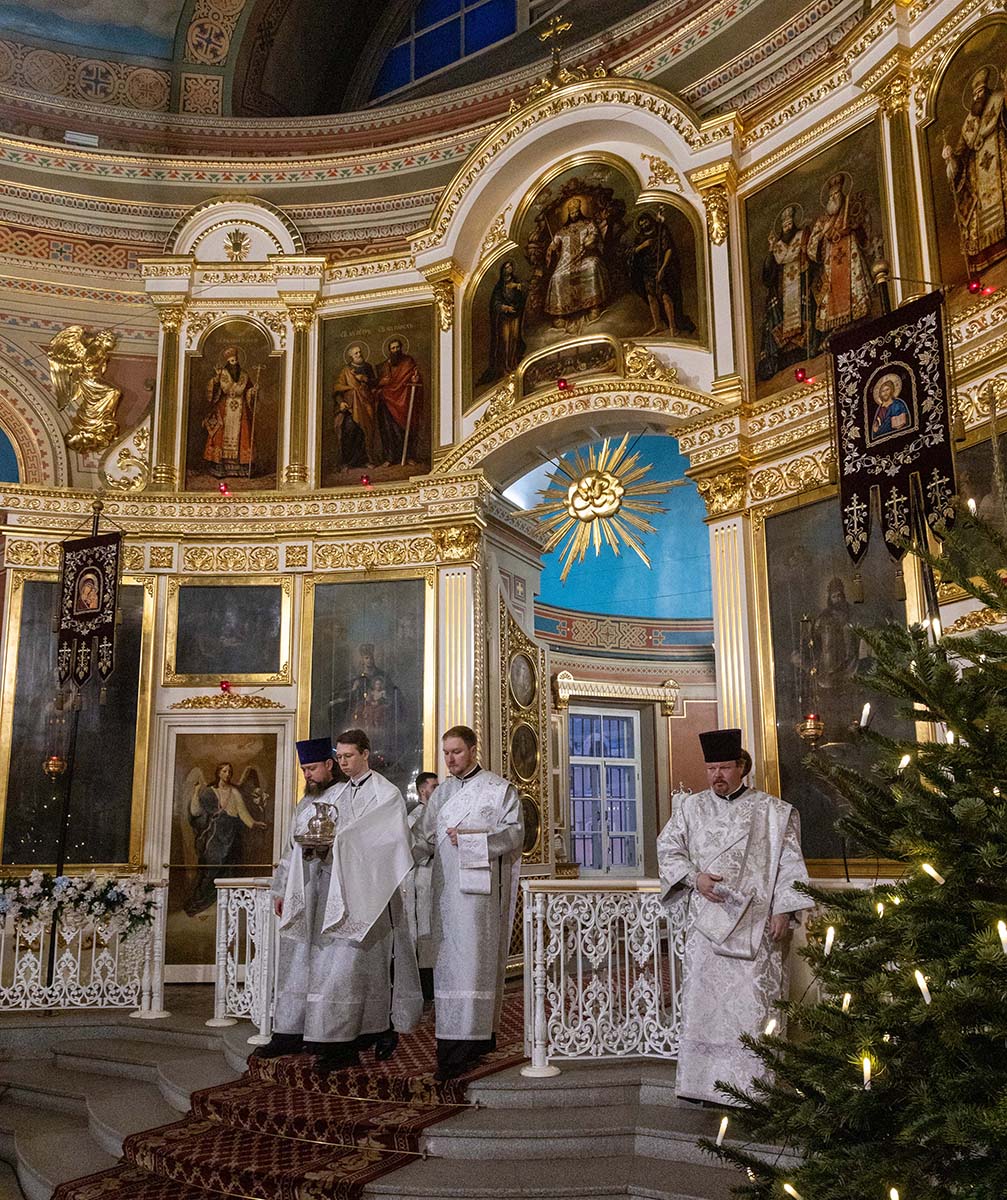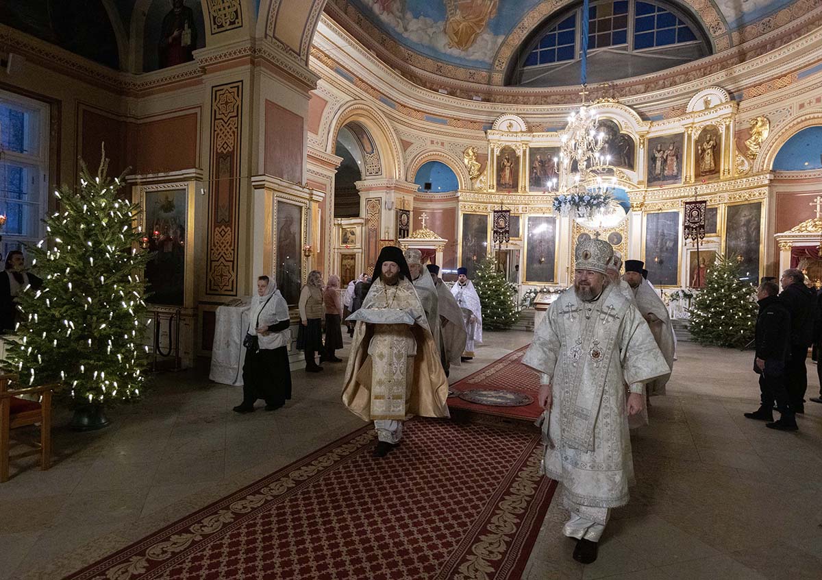 В Неделю по Рождестве Христовом, мучеников младенцев Вифлеемских, 11 января, глава Санкт-Петербургской митрополии, временно управляющий Выборгской епархией, митрополит Санкт-Петербургский и Ладожский Варсонофий совершил Божественную литургию в Спасо-Преображенском соборе Выборга.