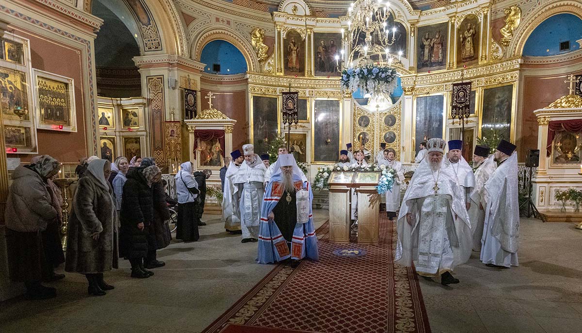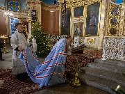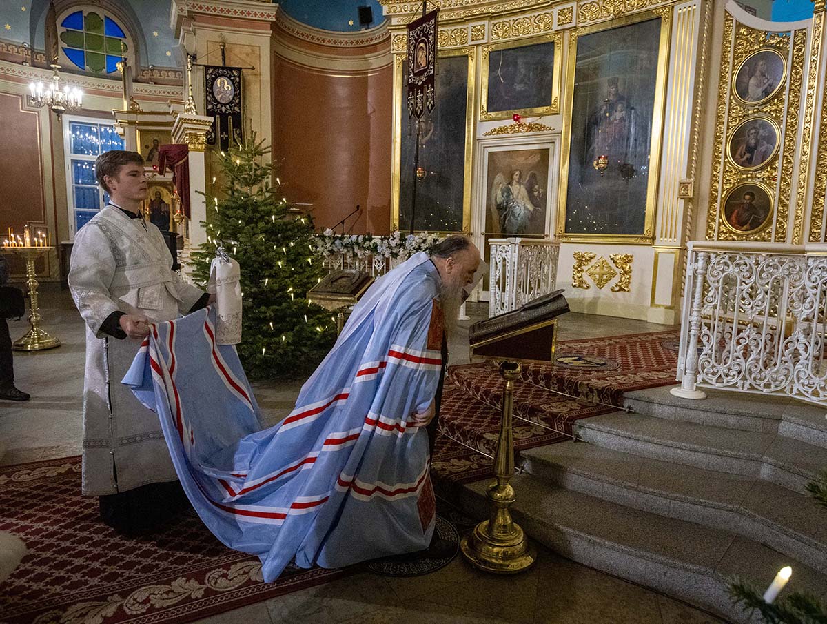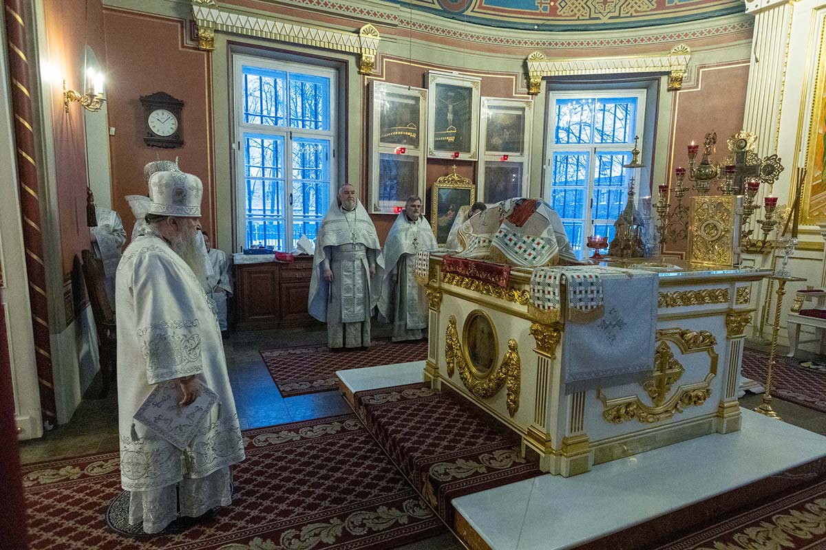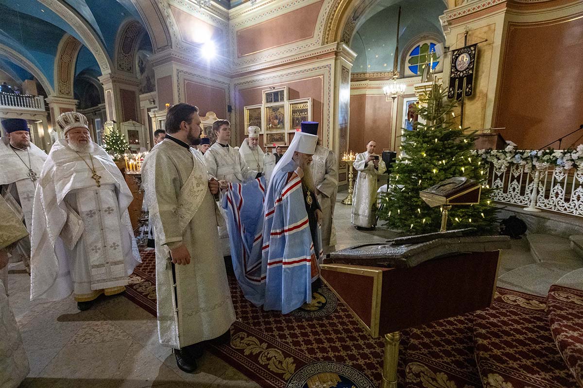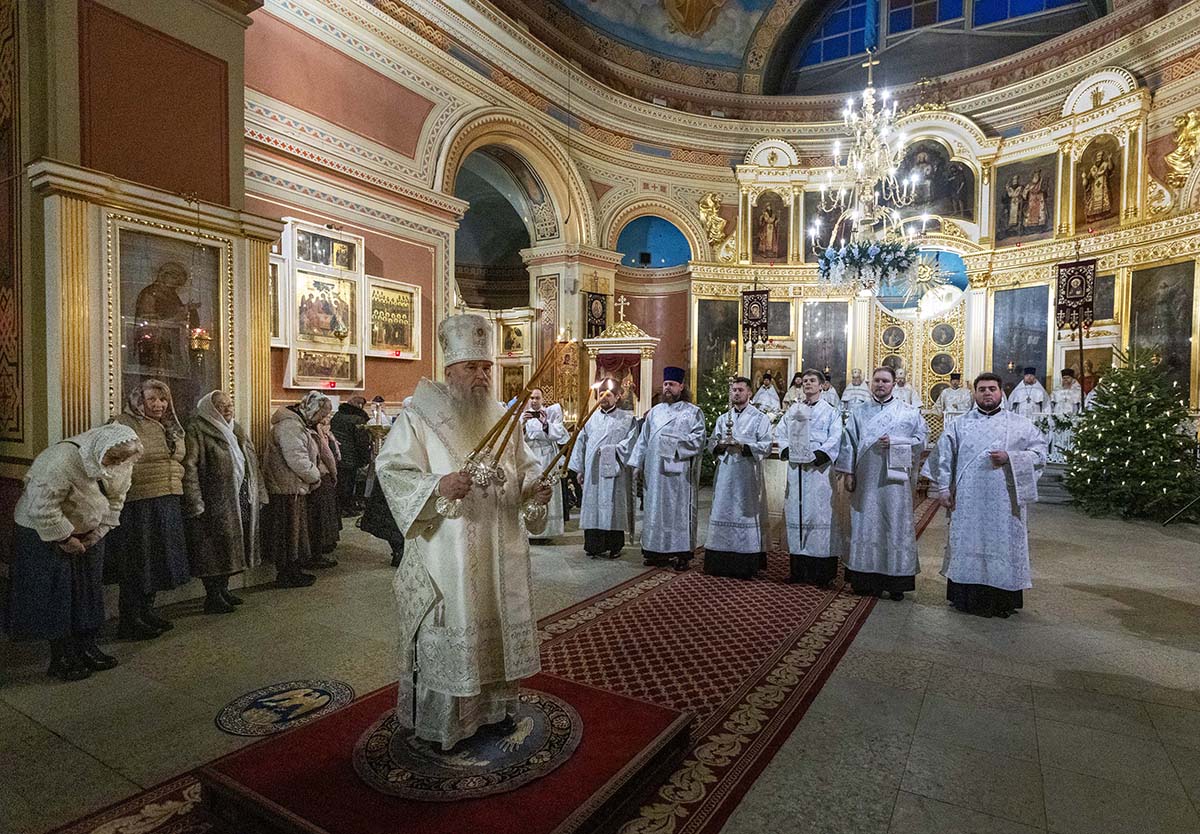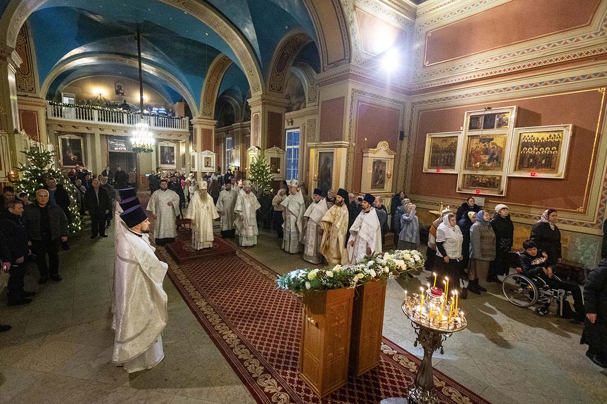 В Неделю по Рождестве Христовом, мучеников младенцев Вифлеемских, 11 января, глава Санкт-Петербургской митрополии, временно управляющий Выборгской епархией, митрополит Санкт-Петербургский и Ладожский Варсонофий совершил Божественную литургию в Спасо-Преображенском соборе Выборга.