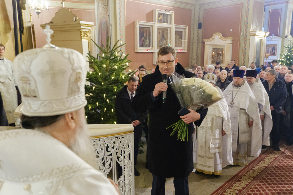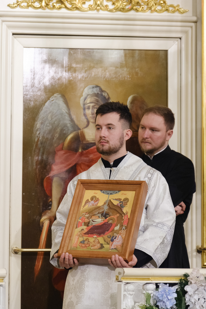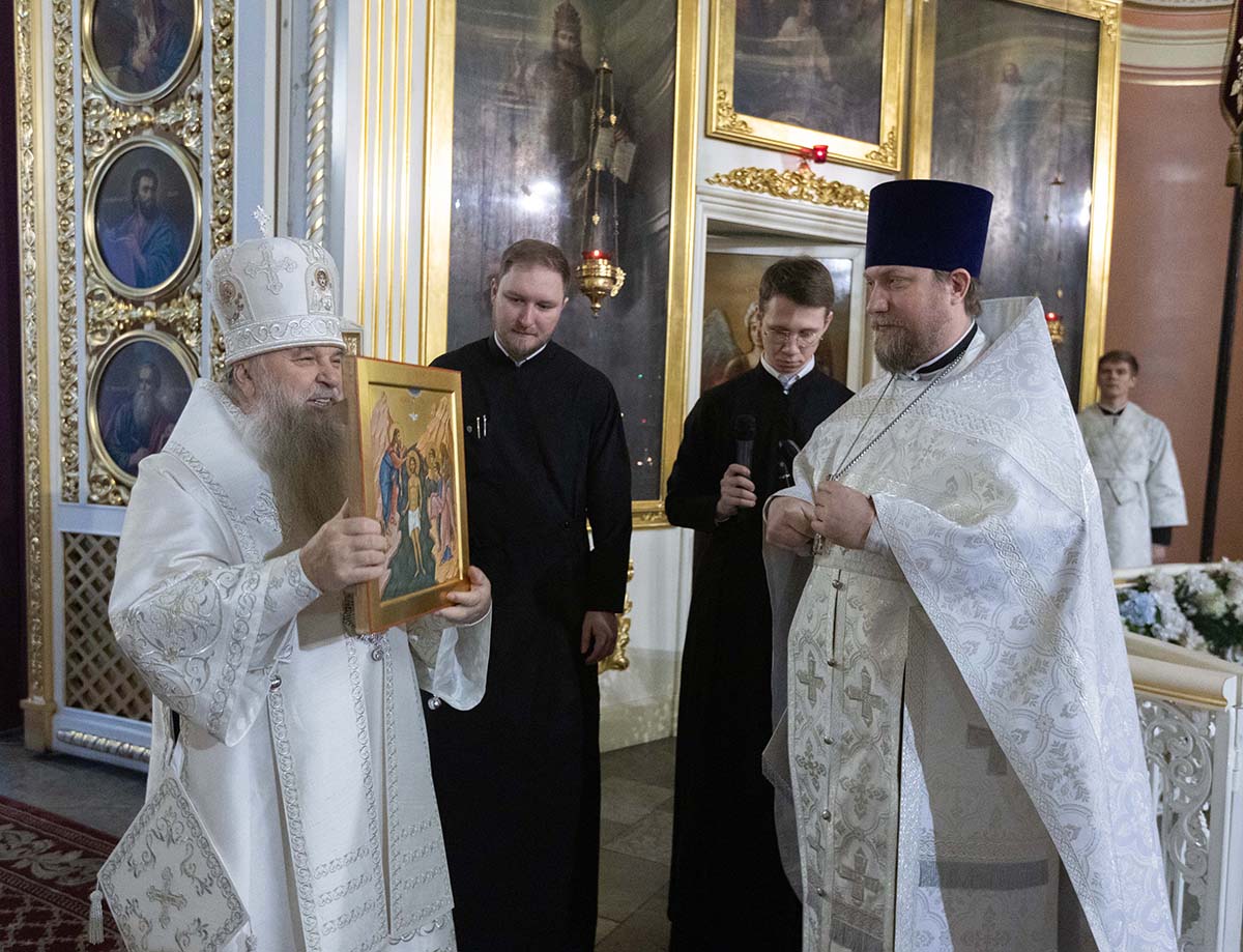 Собору подарена икона Рождества Христова. Ответным подарком от клира стала икона Крещения Господня.