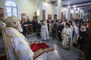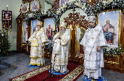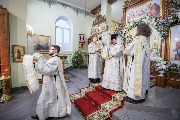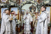 Его Высокопреосвященству сослужили епископ Кронштадтский Вениамин, епископ Тихвинский и Лодейнопольский Мстислав, секретарь епархиального управления протоиерей Сергий Куксевич, наместник монастыря игумен Антоний (Гутник), настоятель иеромонах Николай (Бестужев) с клиром и другие священнослужители.