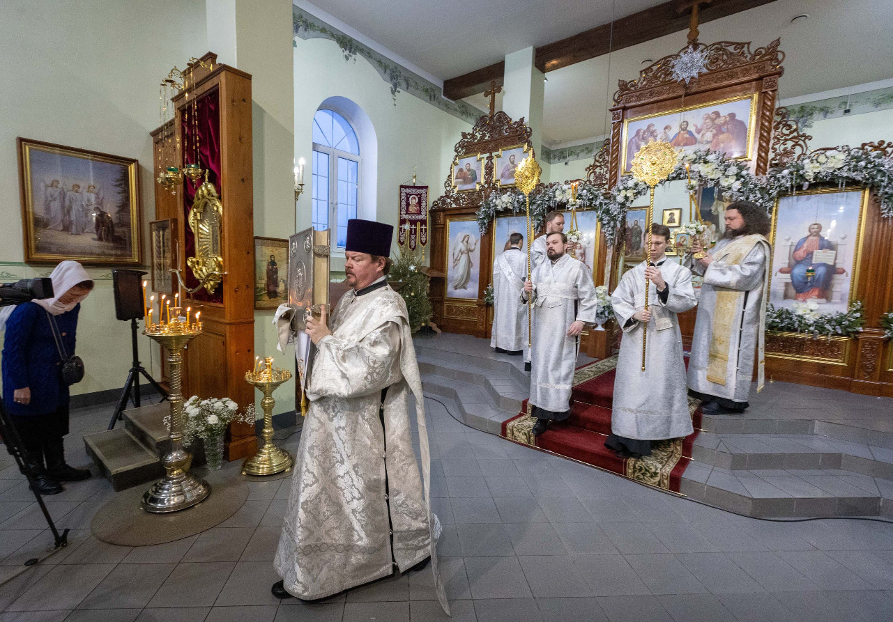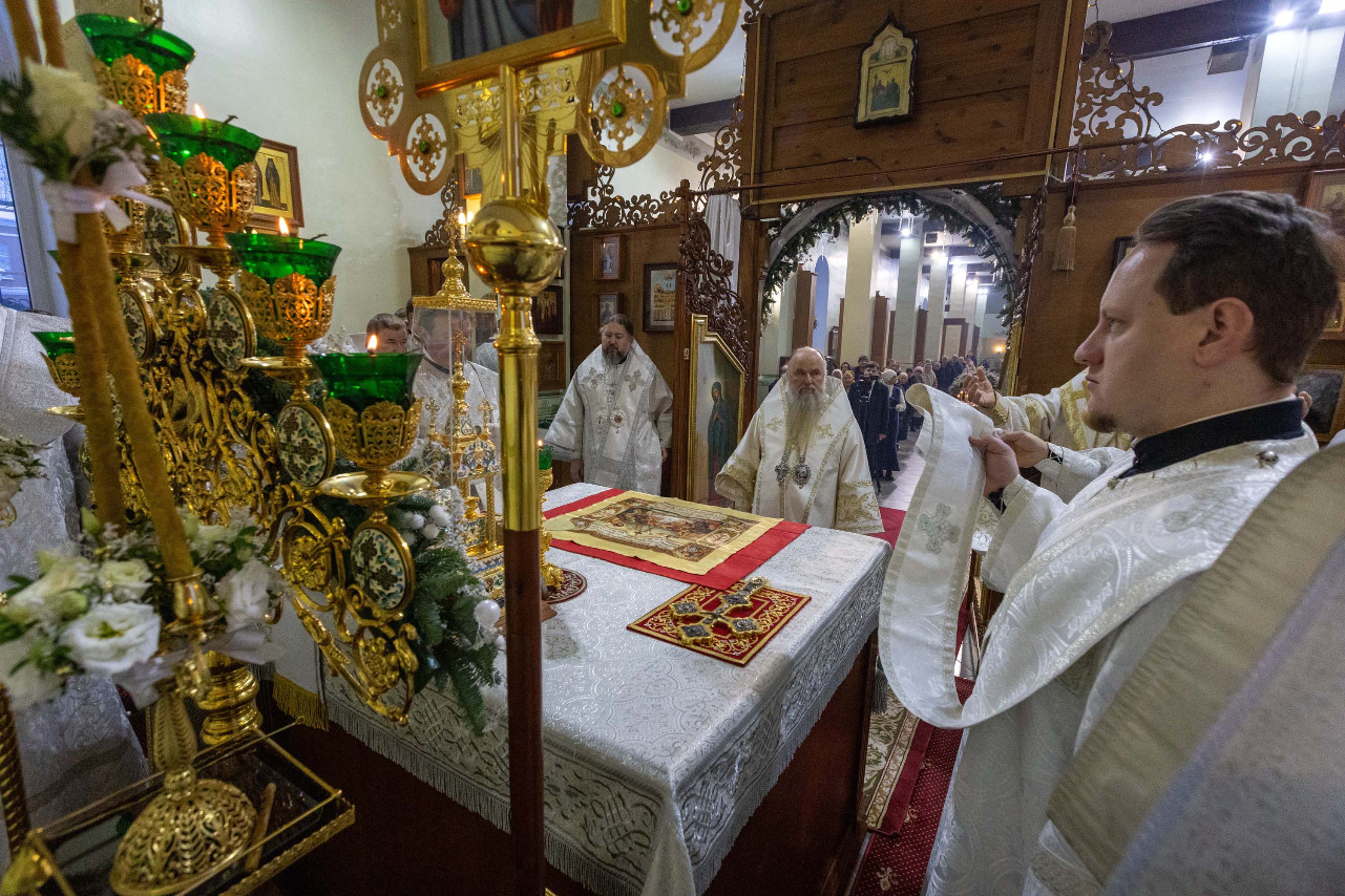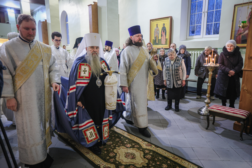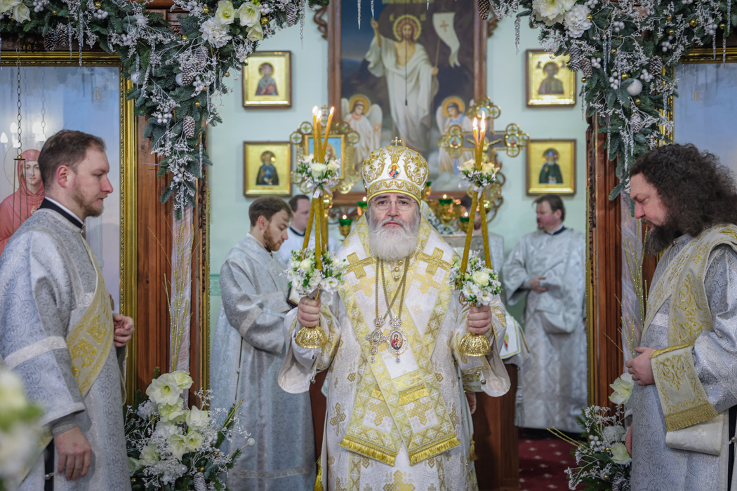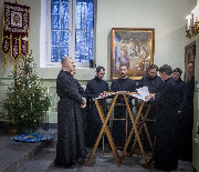 Во вторник седмицы 32-й по Пятидесятнице, отдание праздника Рождества Христова, 13 января, митрополит Санкт-Петербургский и Ладожский Варсонофий совершил Божественную литургию в храме Рождества Христова подворья Александро-Свирского монастыря.