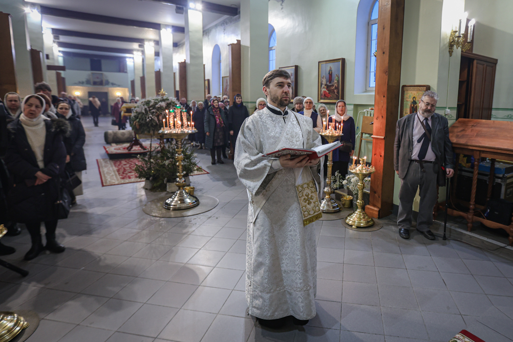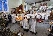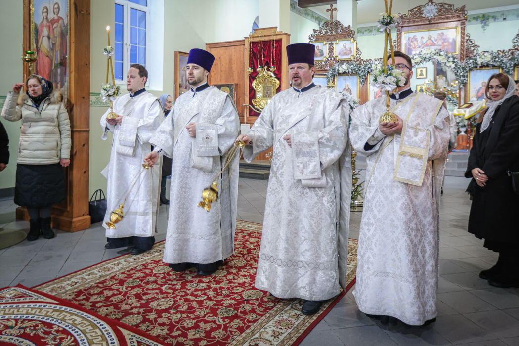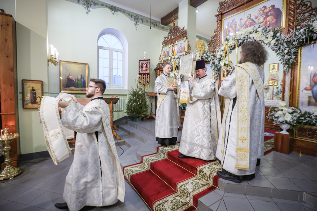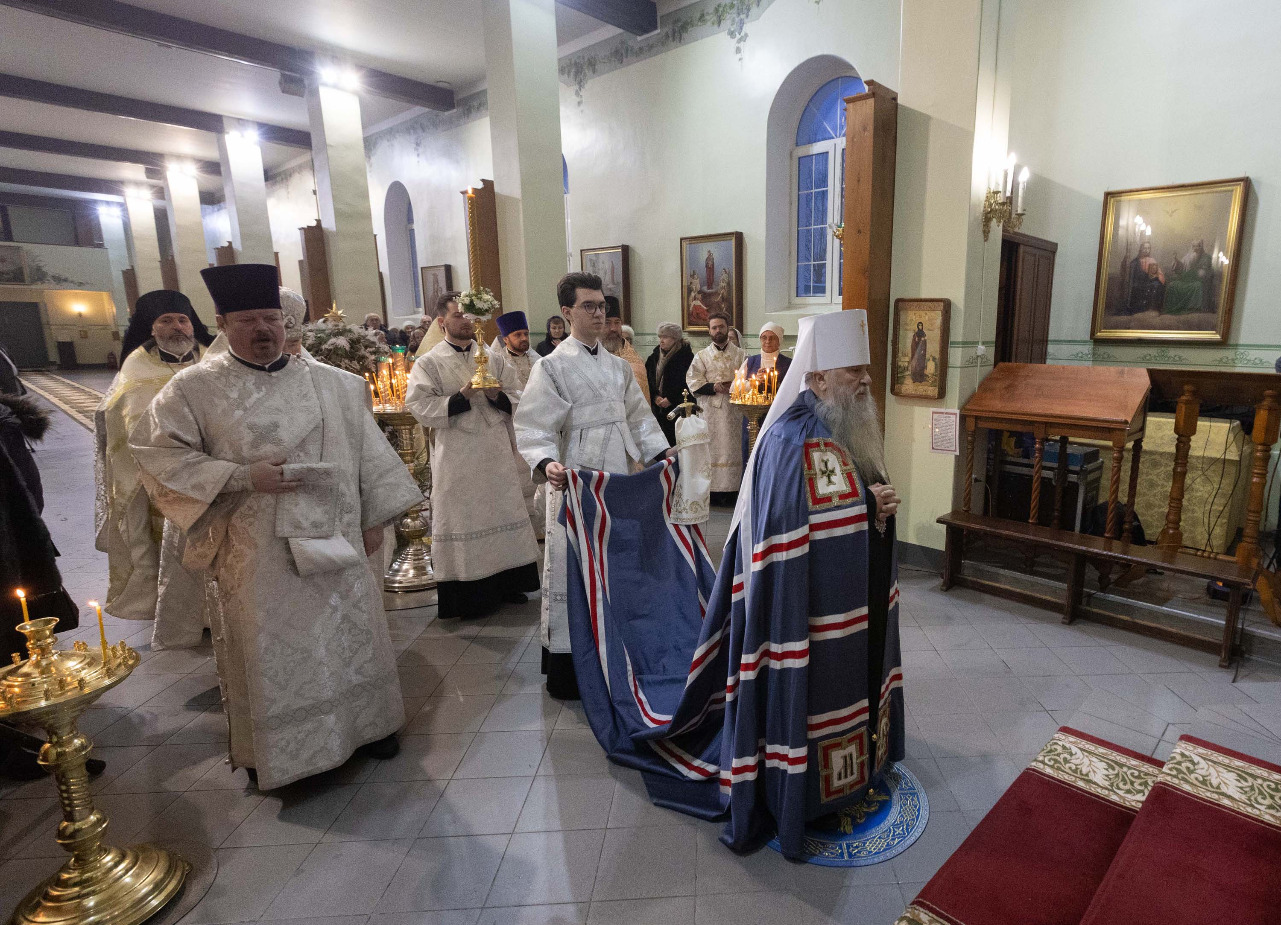 Во вторник седмицы 32-й по Пятидесятнице, отдание праздника Рождества Христова, 13 января, митрополит Санкт-Петербургский и Ладожский Варсонофий совершил Божественную литургию в храме Рождества Христова подворья Александро-Свирского монастыря.