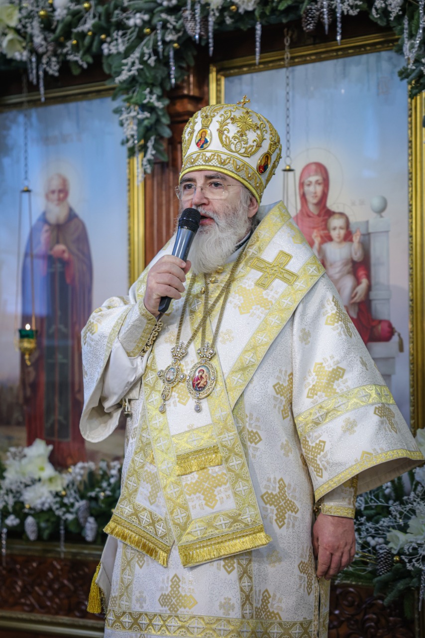 "Мы насытились духовной радостью и отдаем сегодня праздник Рождества Христова уже следующему, 2027 году, - сказал владыка в проповеди. - Суть этого праздника - радость, о которой воспели ангелы, когда Христос родился на земле. Но Его Рождение встретили всего несколько человек - Божия Матерь, Иосиф Обручник, пастухи и волхвы. Весь остальной мир жил своей земной жизнью, люди рождались, торговали, продавали, умирали. И никто не предполагал, что в маленьком Вифлееме появится на свет Сын Божий, который пришел по любви к роду человеческому, чтобы исцелить его природу, которая уже никем не могла быть излечена. Это пробовали делать и пророки, и праведники, но ничего не получалось. Только сам Господь в Себе победил порчу, что была в людях, и даровал им Свои уже обновленные Тело и Кровь. Каждый раз, совершая Божественную литургию, мы приобщаемся этой обновленной плоти".