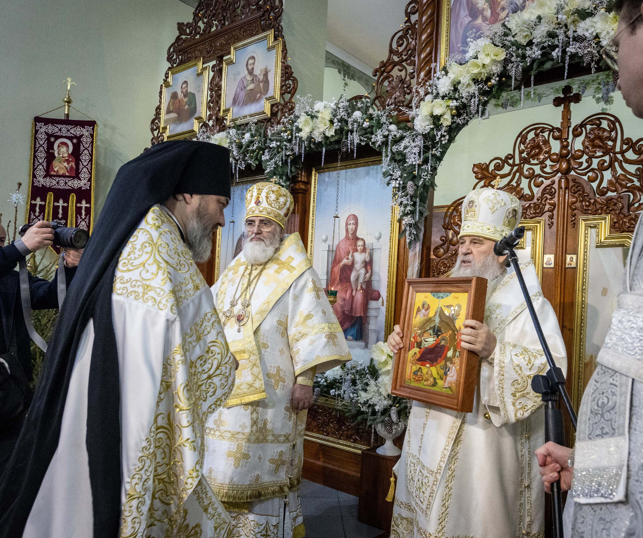 "Мы завершаем праздник Рождества Христова и с радостью видим вас, владыка, здесь, на подворье, которое вы благословили нам как дар любви Бога, чтобы братии здесь останавливаться и жить. Это для нас духовная и материальная поддержка, потому что мы здесь чувствуем себя, как дома, и знаем, что наш преподобный Александр Свирский всегда молится за нас. Сегодня еще и день прославления преподобного Паисия Святогорца, который вас наставлял и благословил на святительское служение Церкви Христовой", - сказал владыка Мстислав, подарив правящему архиерею икону Спасителя и букет цветов.