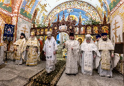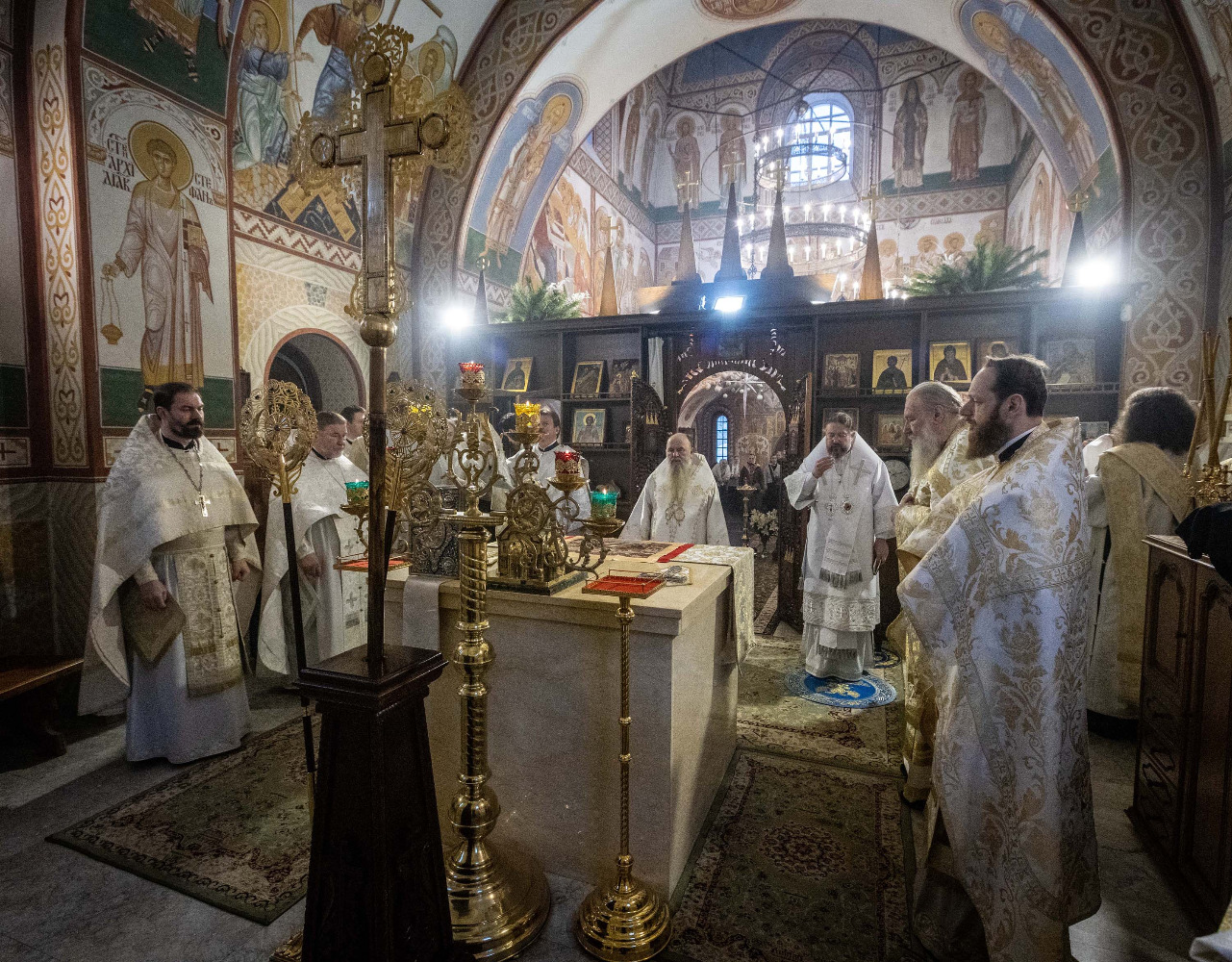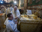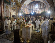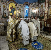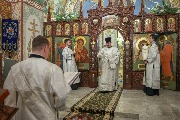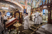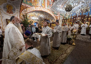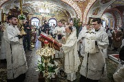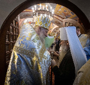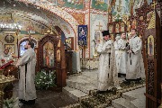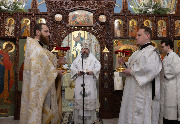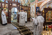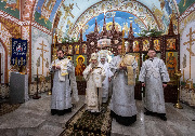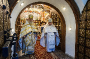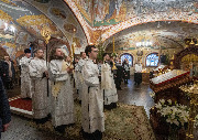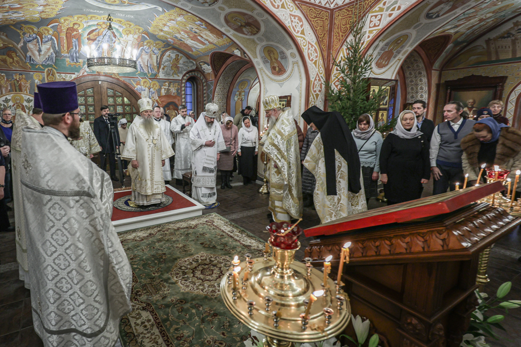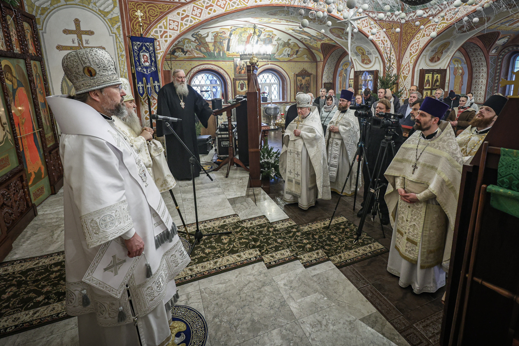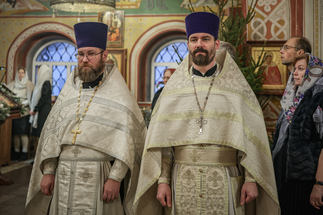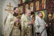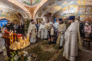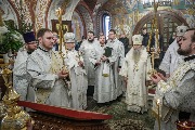 Его Высокопреосвященству сослужили епископ Кронштадтский Вениамин, секретарь епархиального управления протоиерей Сергий Куксевич, благочинный Пушкинского округа протоиерей Никита Зверев, настоятель протоиерей Александр Покрамович с клиром и другие священнослужители.