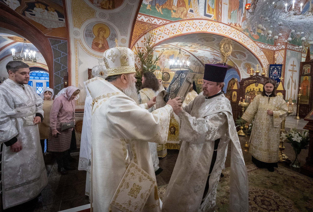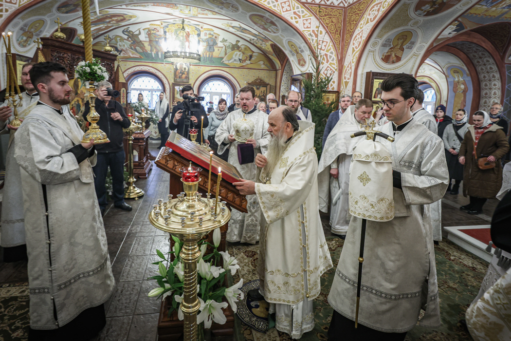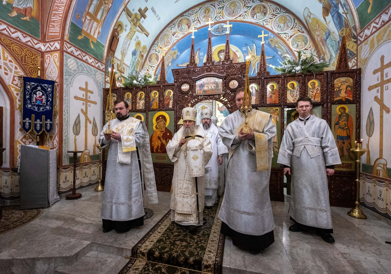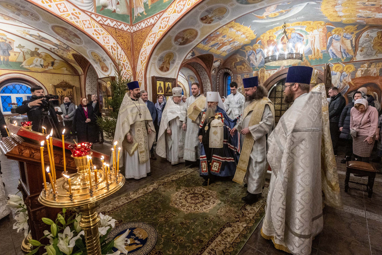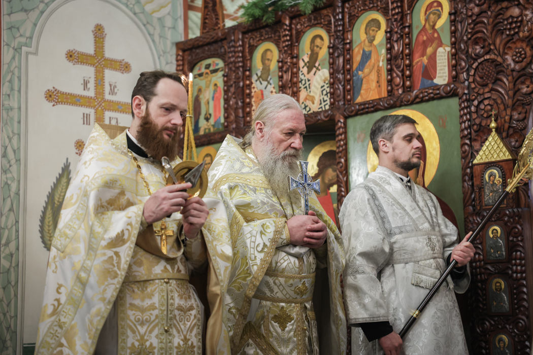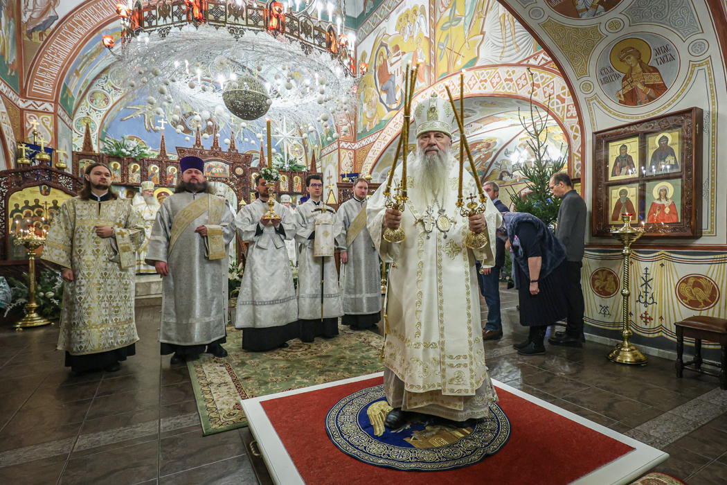 В праздник Обрезания Господня, святителя Василия Великого, 14 января, митрополит Санкт-Петербургский и Ладожский Варсонофий совершил Божественную литургию в храме Преображения Господня поселка Тярлево.