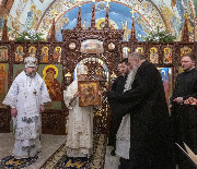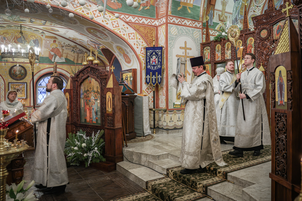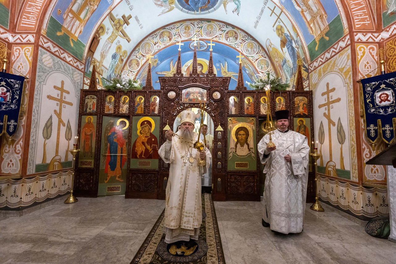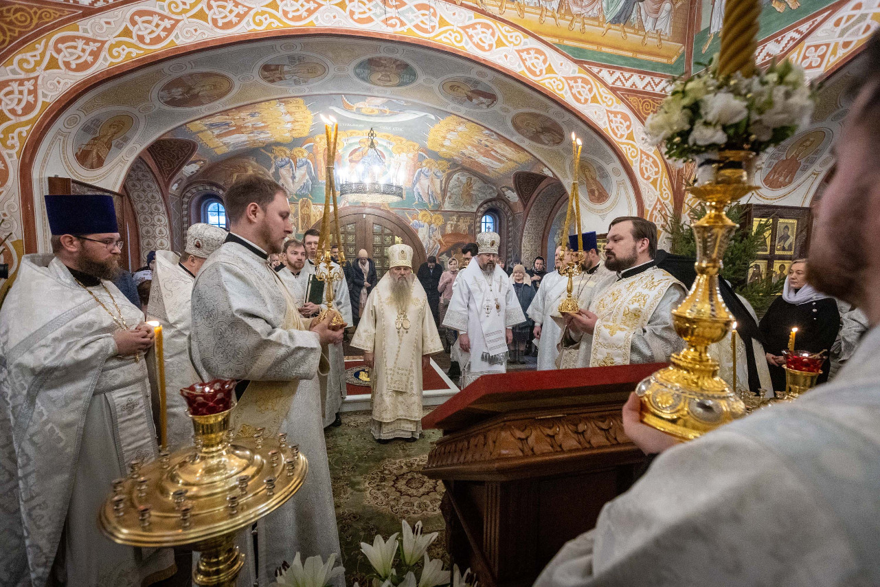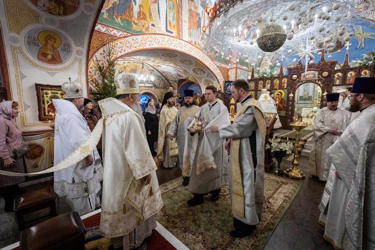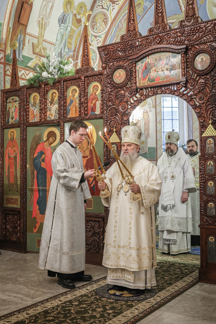 В праздник Обрезания Господня, святителя Василия Великого, 14 января, митрополит Санкт-Петербургский и Ладожский Варсонофий совершил Божественную литургию в храме Преображения Господня поселка Тярлево.
