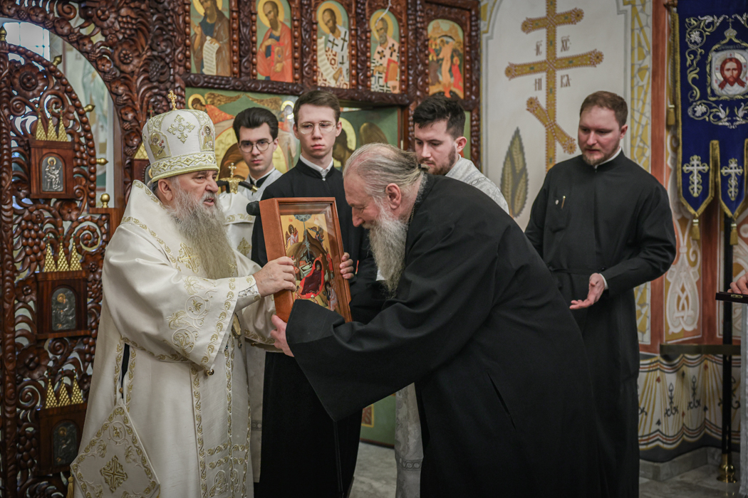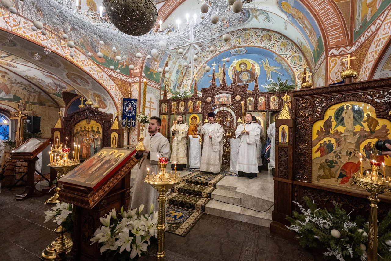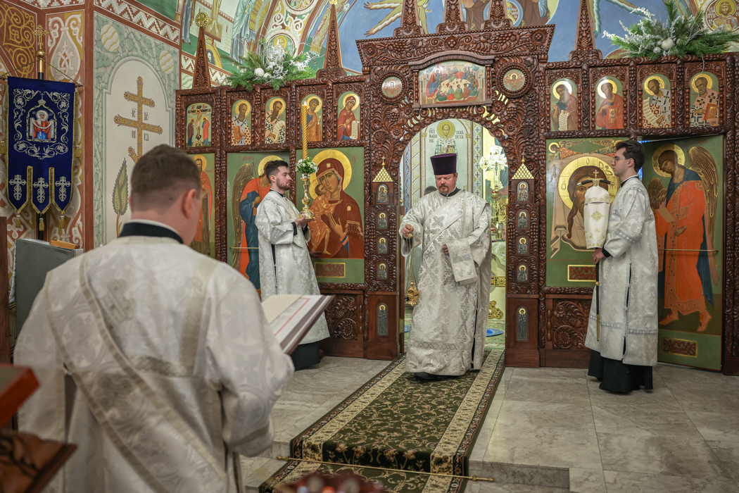 Было совершено славление перед иконой святителя Василия Великого.
