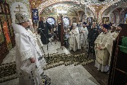 "На восьмой день по Рождестве Христовом мы празднуем Обрезание Господне и совершаем память святителя Василия Великого, архиепископа Кесарии Каппадокийской, - сказал владыка в проповеди. - Поздравляю вас также с Новым годом по юлианскому календарю. Обрезание было великим постановлением Божиим, по которому каждый израильтянин, принимавший его, вступал в завет с Богом. Этот завет Господь установил с Авраамом, который первым принял обрезание. Затем это было закреплено в Законе Моисеевом: каждый иудей должен был таким образом заключать завет с Богом. Обрезание - это прообраз Крещения Господня. Мы живем в Новом Завете и заключаем завет с Ним в Крещении, когда отрекаемся от сатаны и сочетаемся со Христом. А в ветхозаветной Церкви был обычай обрезания. Иначе человек не становился членом иудейской общины, лишался всяких прав, а то и жизни. Поскольку Господь был установителем этого закона, то и Он принял обрезание и был назван Иисусом. Архангел Гавриил возвестил Деве Марии еще до зачатия, что Она родит Сына и наречет имя Ему Иисус, то есть Спаситель. Христос пришел в мир, чтобы спасти нас, и все мы должны веровать в Него как в нашего Спасителя, Сына Божия. Только этой верой мы соединяемся с Ним и имеем жизнь вечную. Если же не исповедуем Его как Спасителя, то и не спасемся. Надо твердо придерживаться постановлений Церкви".