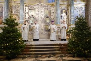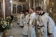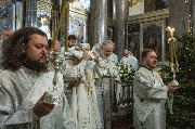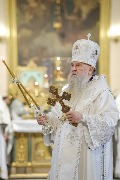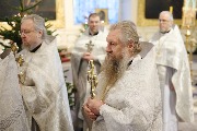 Его Высокопреосвященству сослужили протоиерей Николай Преображенский, ключарь собора протоиерей Андрей Герасимов, председатель приходского совета протоиерей Александр Пашков, клир собора и другие священнослужители.