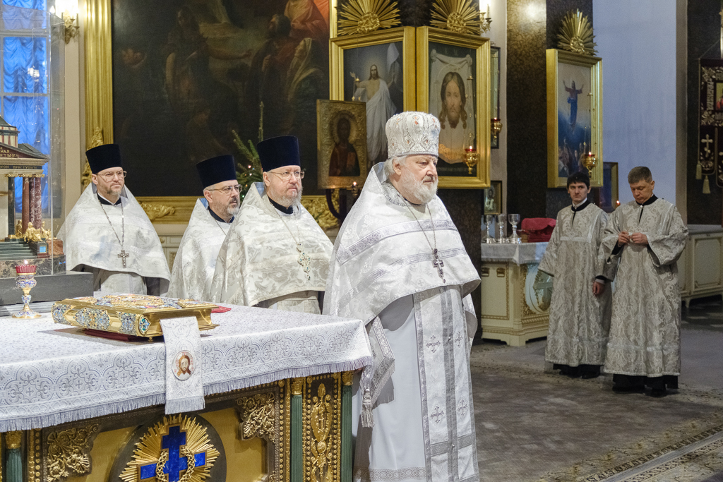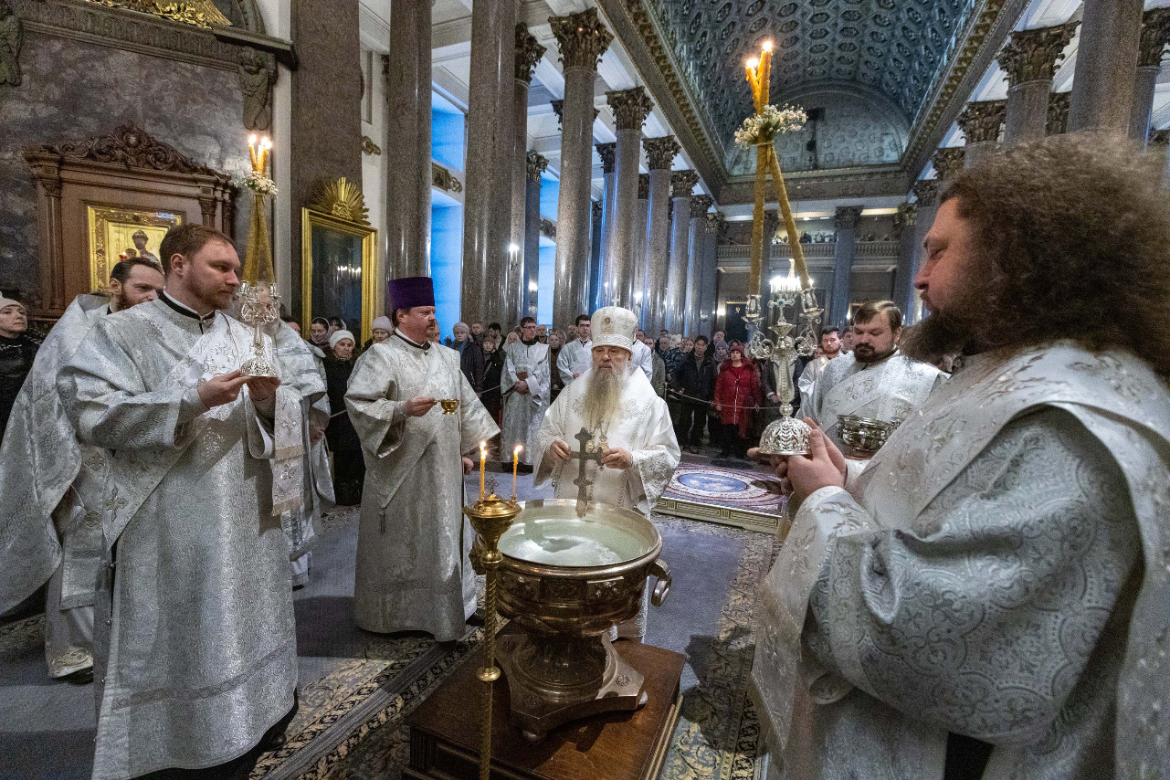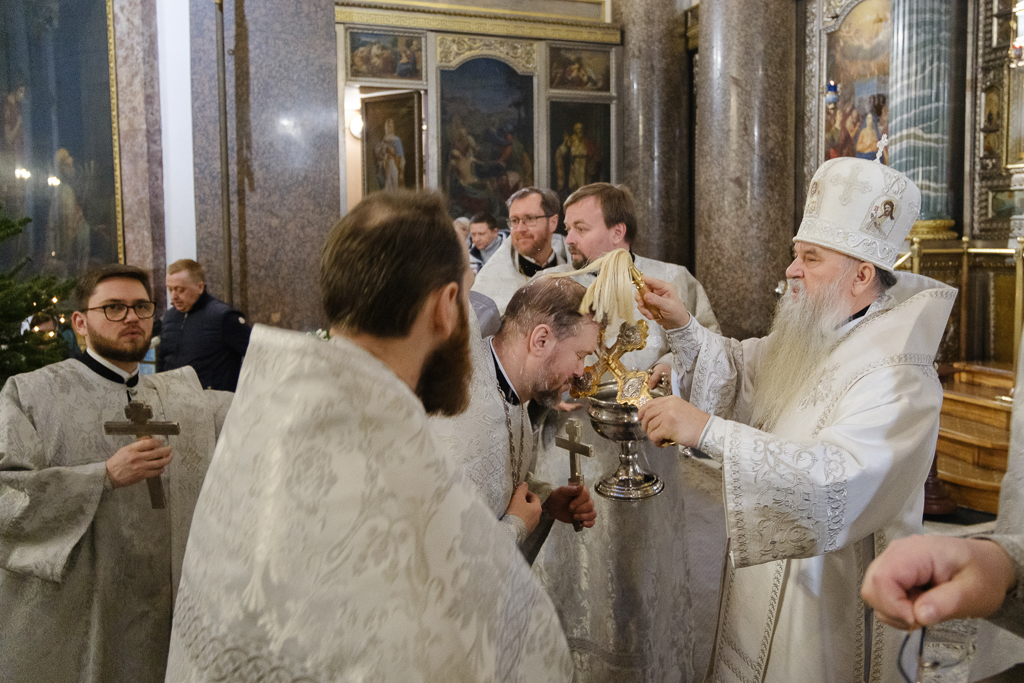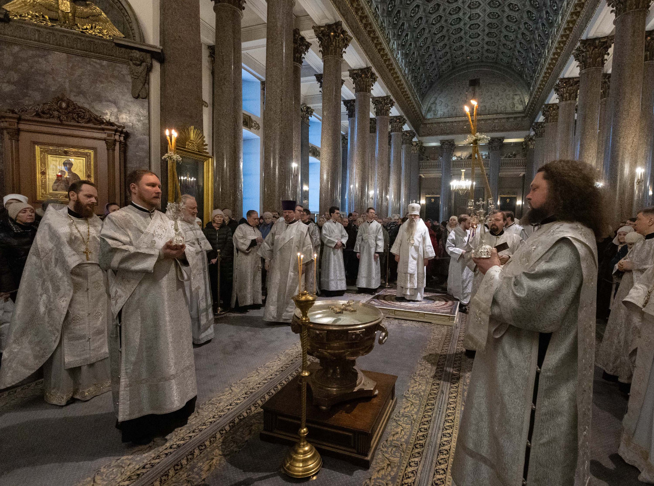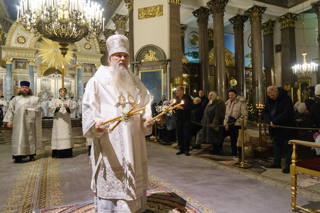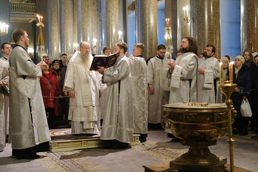 В навечерие Богоявления (Крещенский сочельник), 18 января, митрополит Санкт-Петербургский и Ладожский Варсонофий совершил Божественную литургию в Казанском кафедральном соборе.
