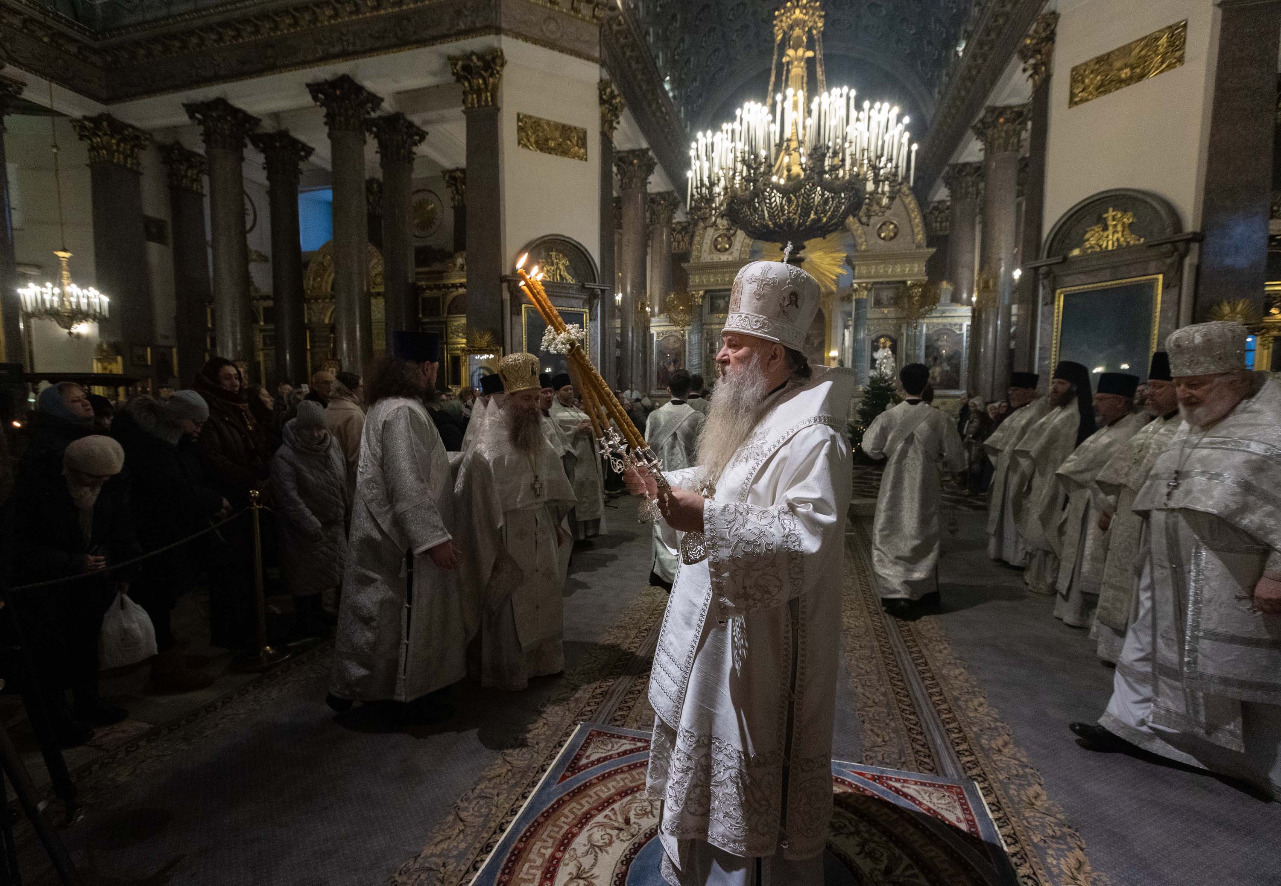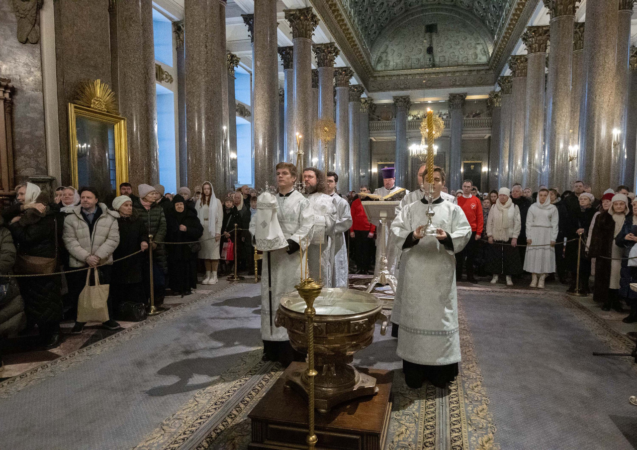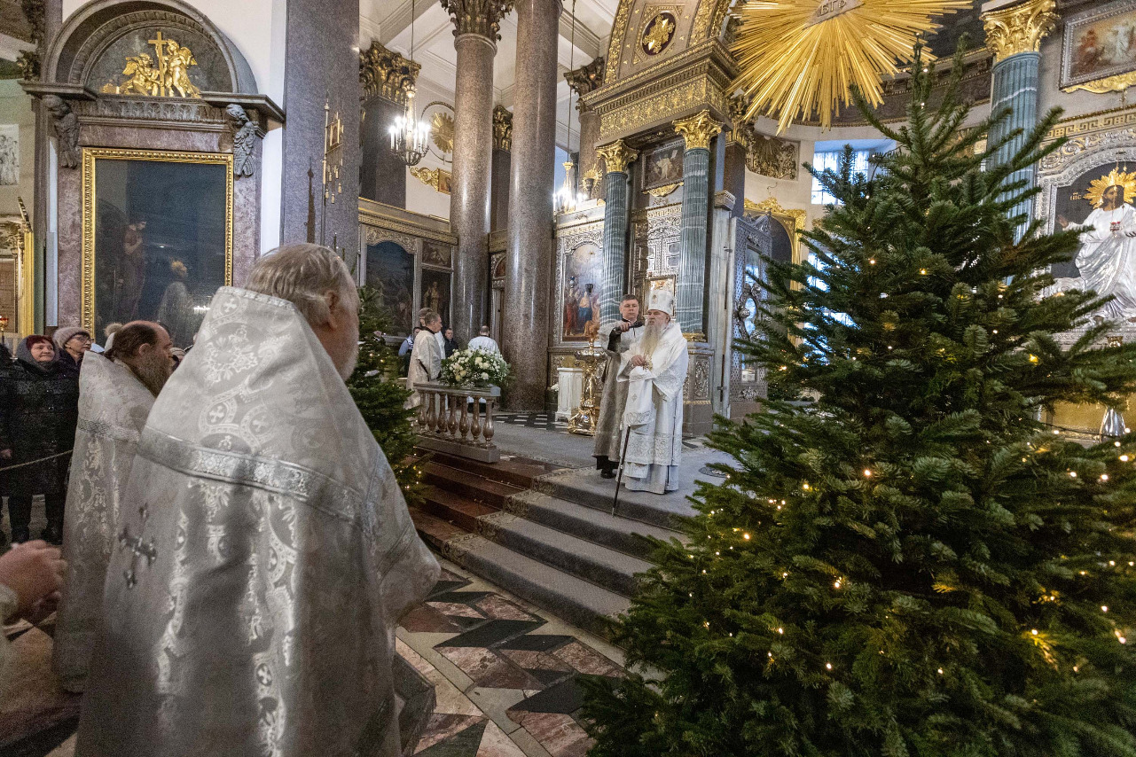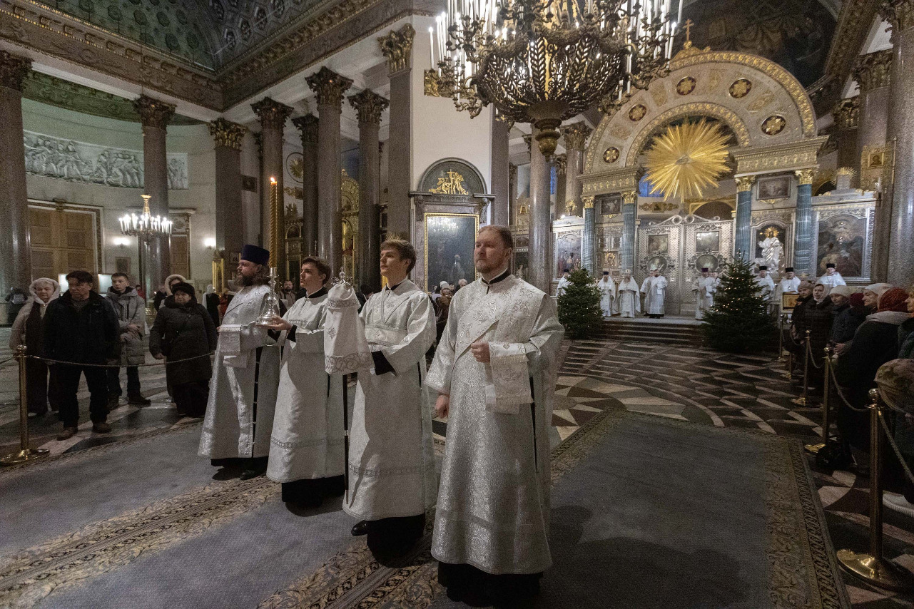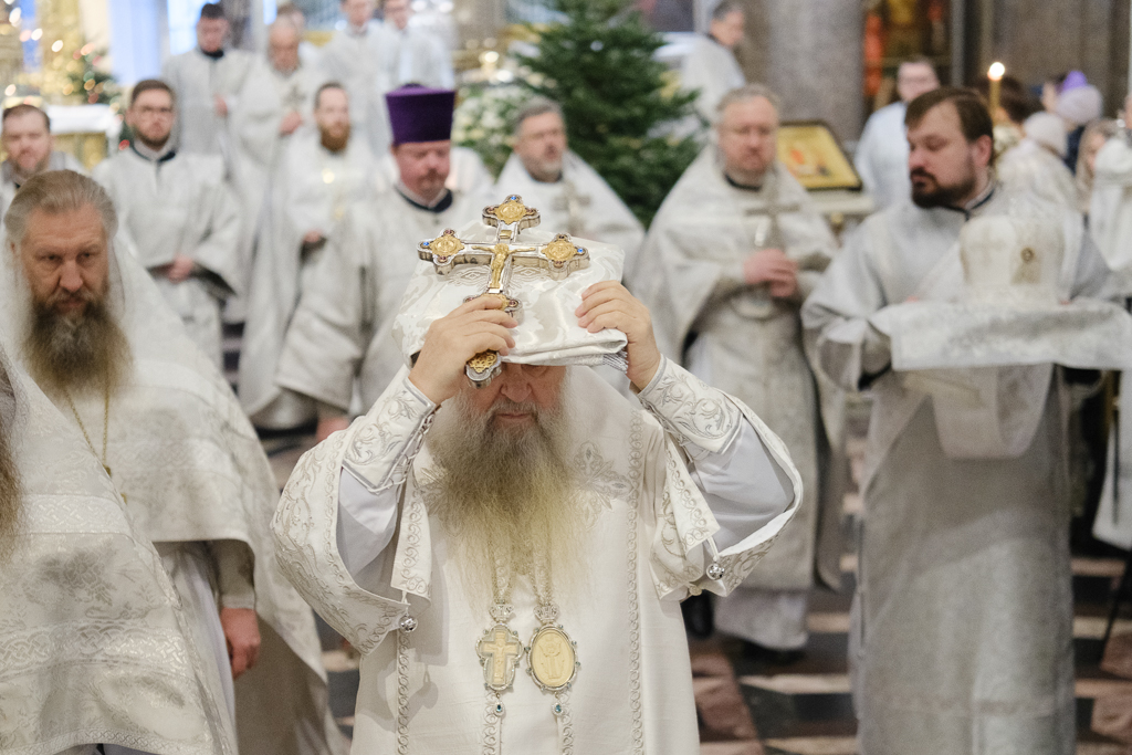 В навечерие Богоявления (Крещенский сочельник), 18 января, митрополит Санкт-Петербургский и Ладожский Варсонофий совершил Божественную литургию в Казанском кафедральном соборе.
