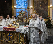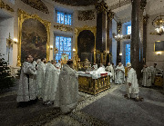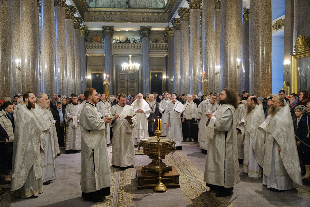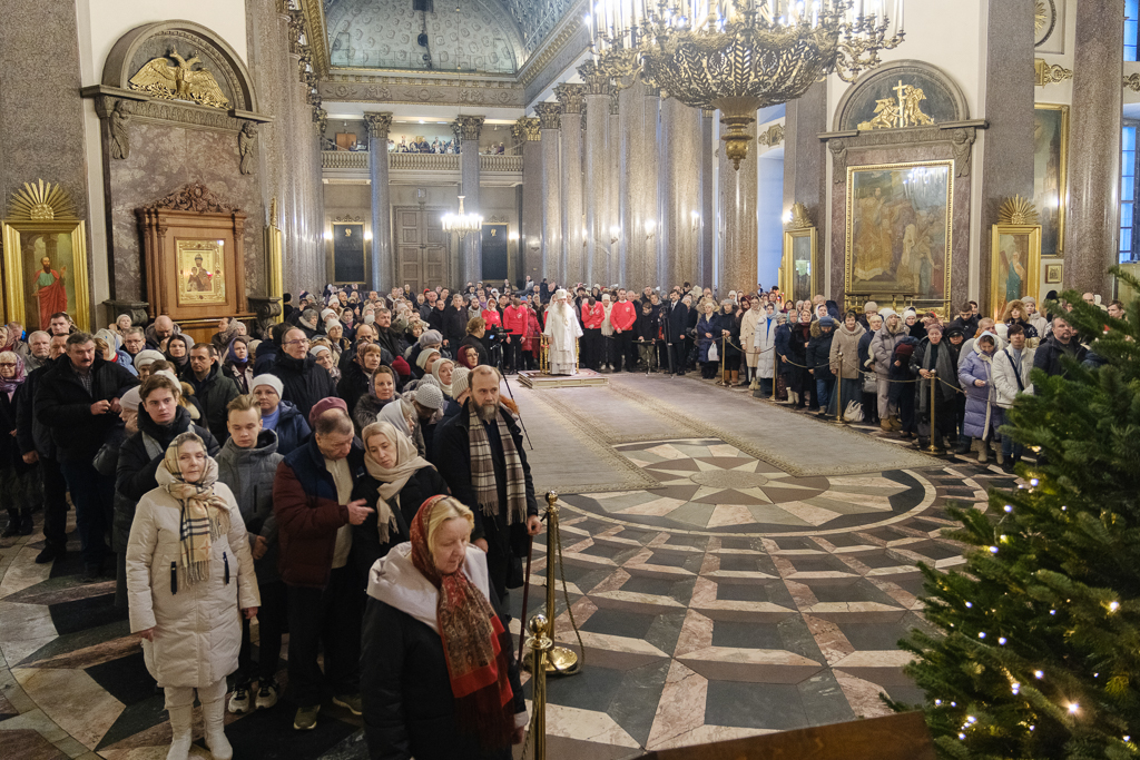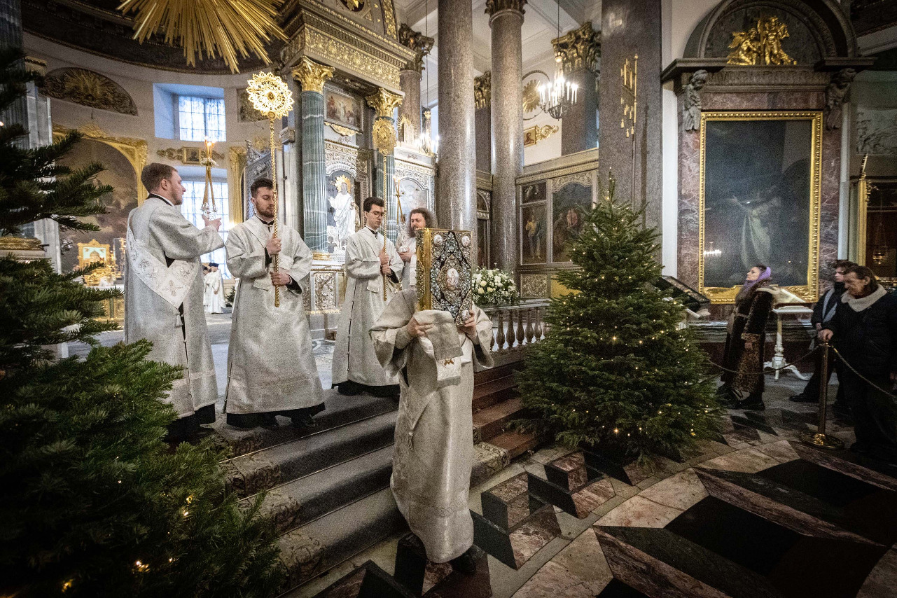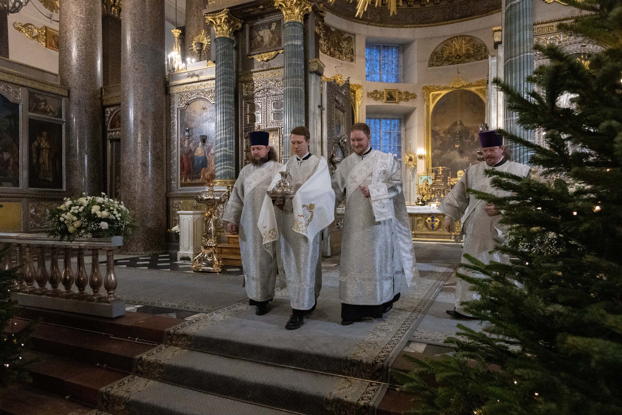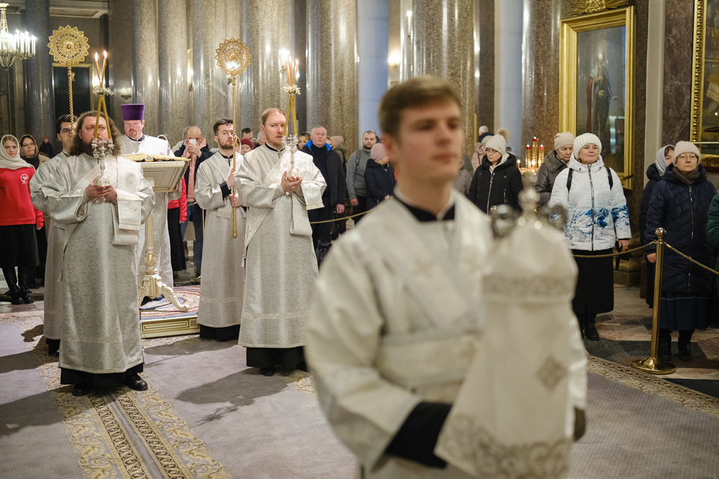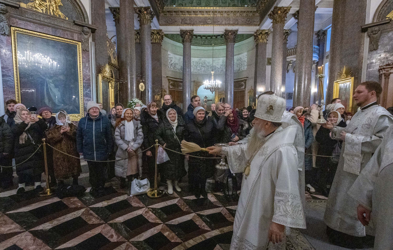 В навечерие Богоявления (Крещенский сочельник), 18 января, митрополит Санкт-Петербургский и Ладожский Варсонофий совершил Божественную литургию в Казанском кафедральном соборе.