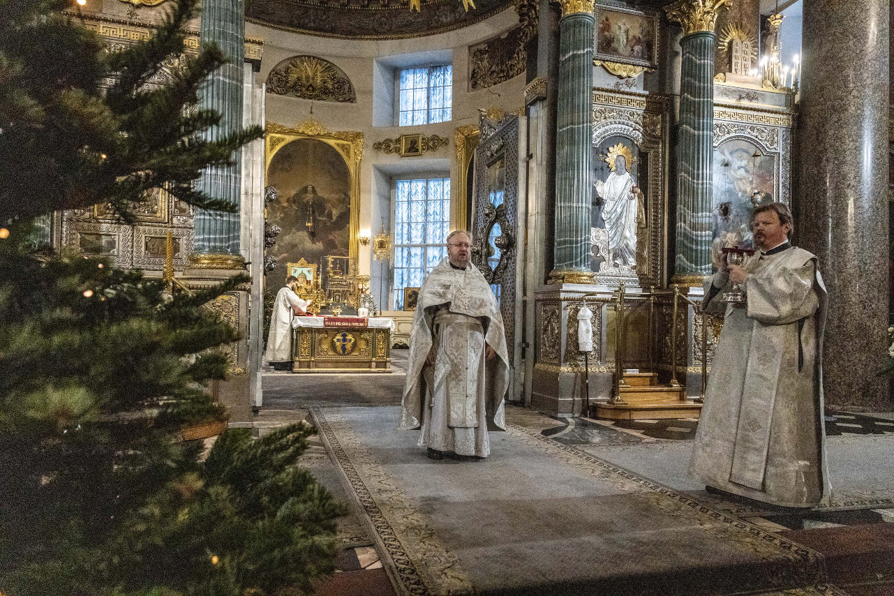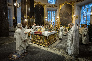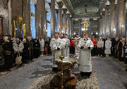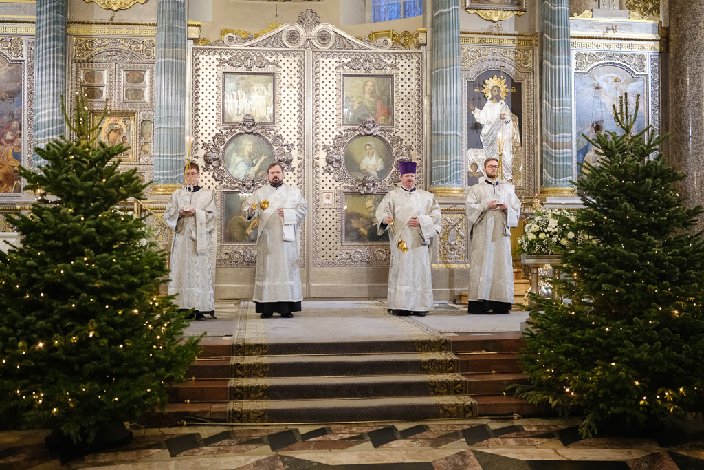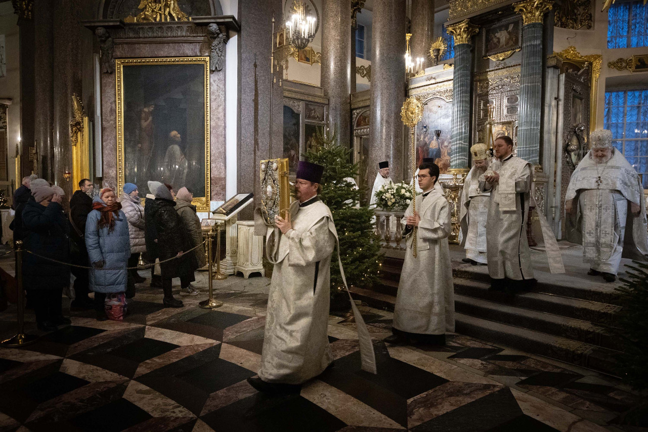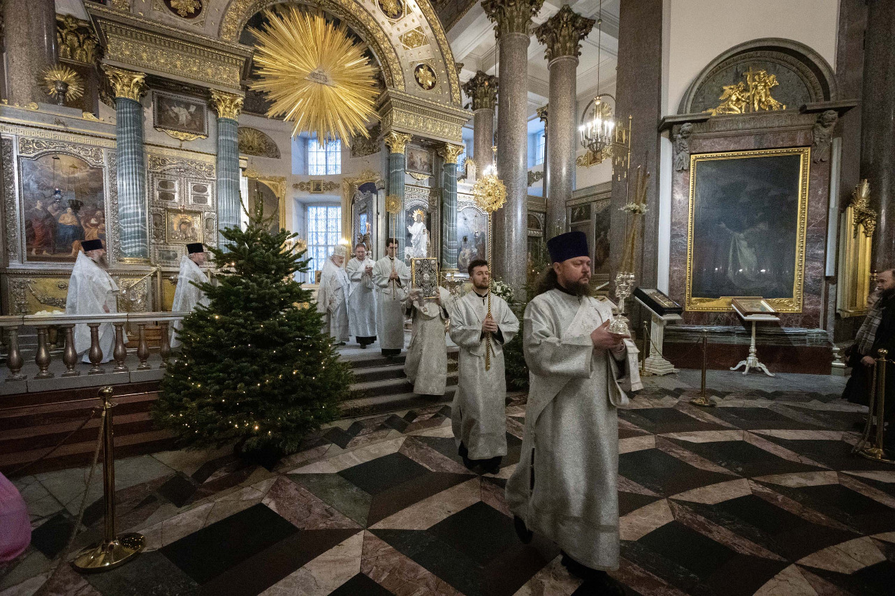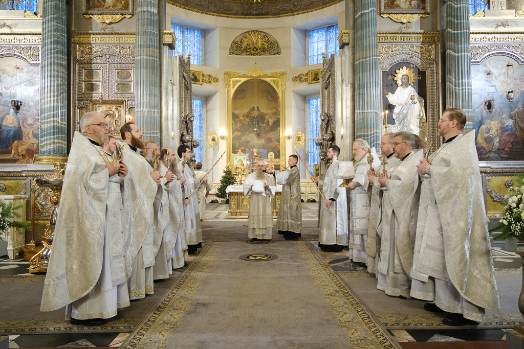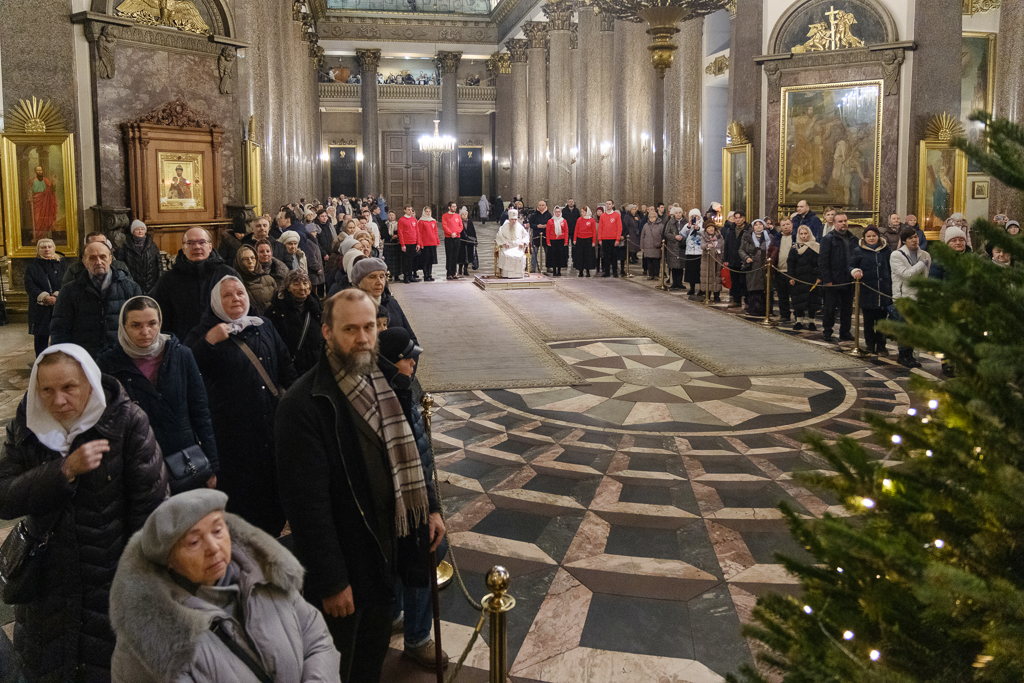 В навечерие Богоявления (Крещенский сочельник), 18 января, митрополит Санкт-Петербургский и Ладожский Варсонофий совершил Божественную литургию в Казанском кафедральном соборе.