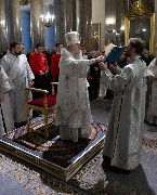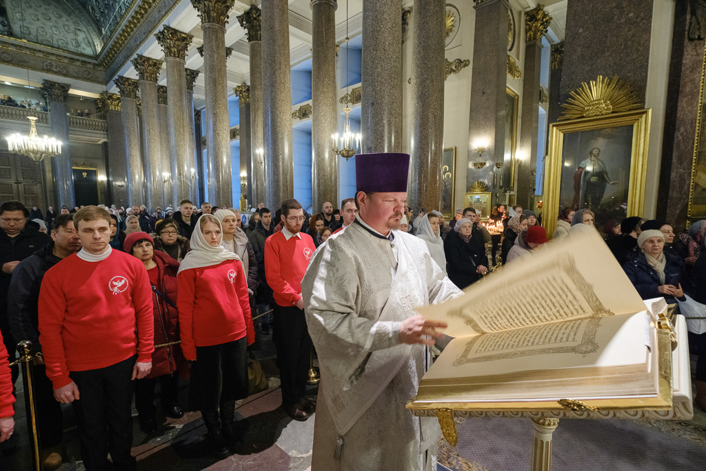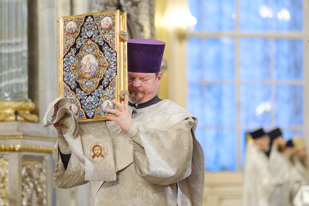 ... В четверг 1-й седмицы Великого поста, 26 февраля, митрополит Санкт-Петербургский и Ладожский Варсонофий молился за уставным богослужением в Казанском кафедральном соборе - утреней, часами, изобразительными и вечерней, которые совершил протоиерей Константин Головатский ...