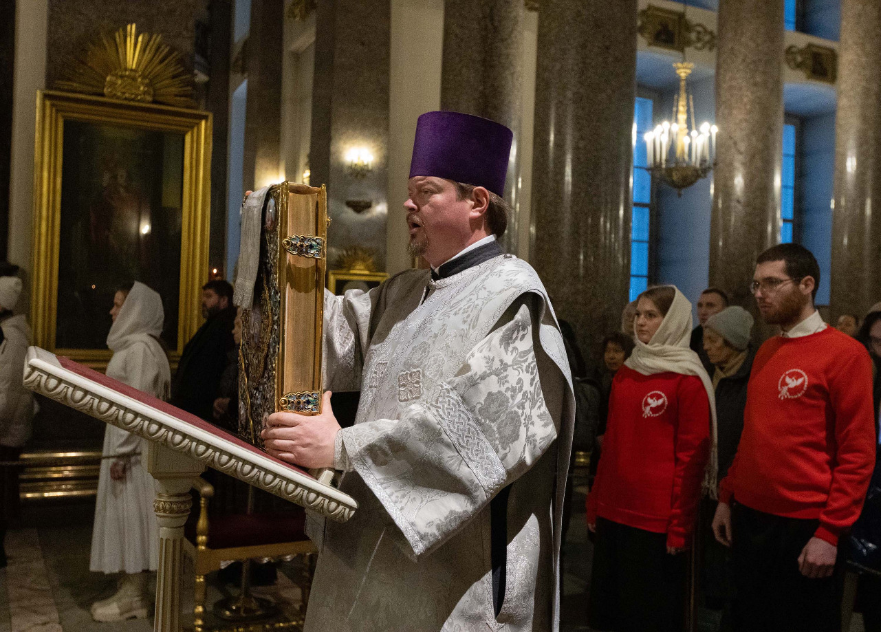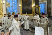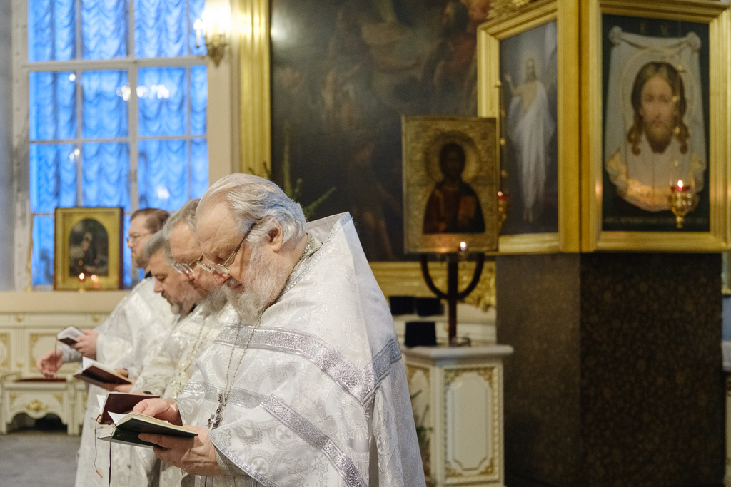 Во вторник 1-й седмицы Великого поста, 24 февраля, митрополит Санкт-Петербургский и Ладожский Варсонофий молился за уставным богослужением в Казанском кафедральном соборе - утреней, часами, изобразительными и вечерней, которое совершил протоиерей Александр Пашков ...