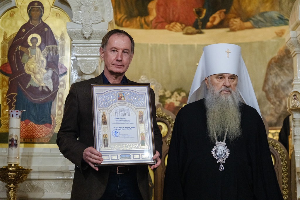 Знака священномученика Вениамина, митрополита Петроградского, удостоены благотворители Михаил Дронь и Александр Миненков. Митрополичьей грамотой отмечен Андрей Ковалев.