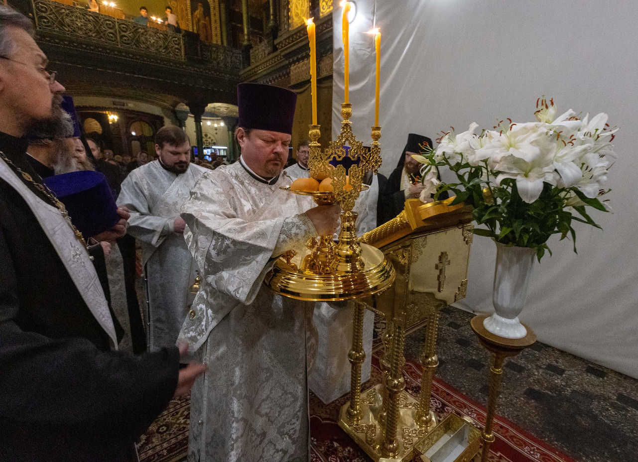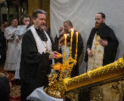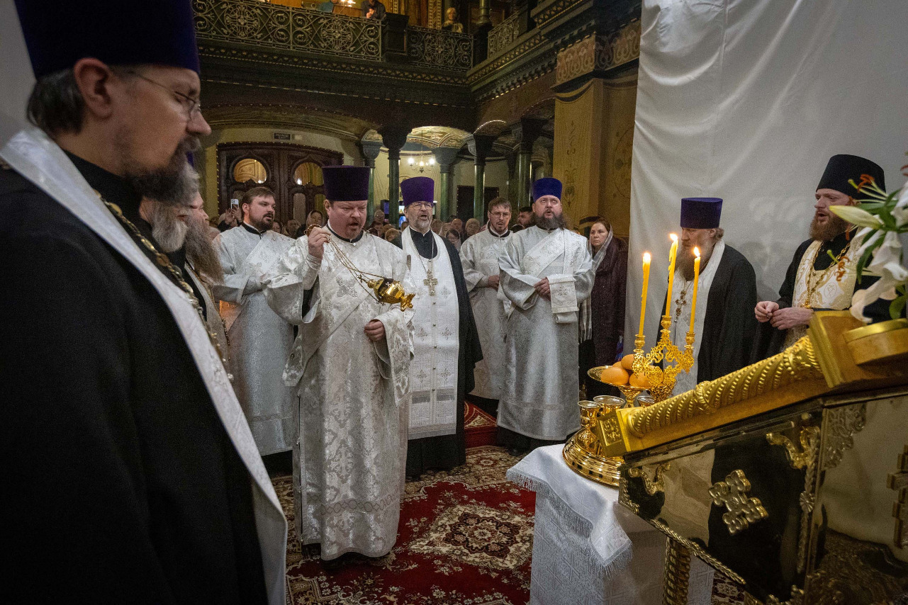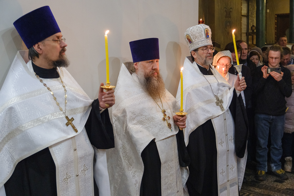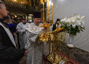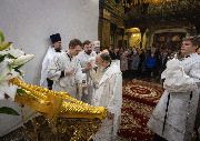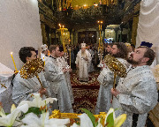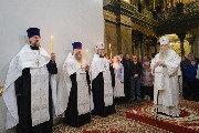 Его Высокопреосвященству сослужили настоятель протоиерей Павел Феер с клиром, благочинный Кировского округа протоиерей Александр Пашков и другие священнослужители.