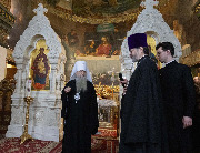 Настоятель поблагодарил митрополита за совместную молитву и подарил ему Казанскую икону Божией Матери.