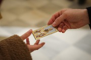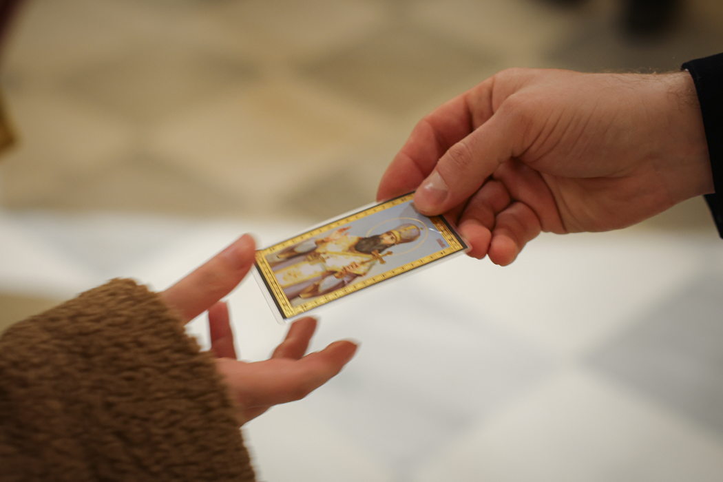 Верующим раздали иконки чтимых святых.