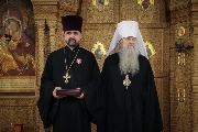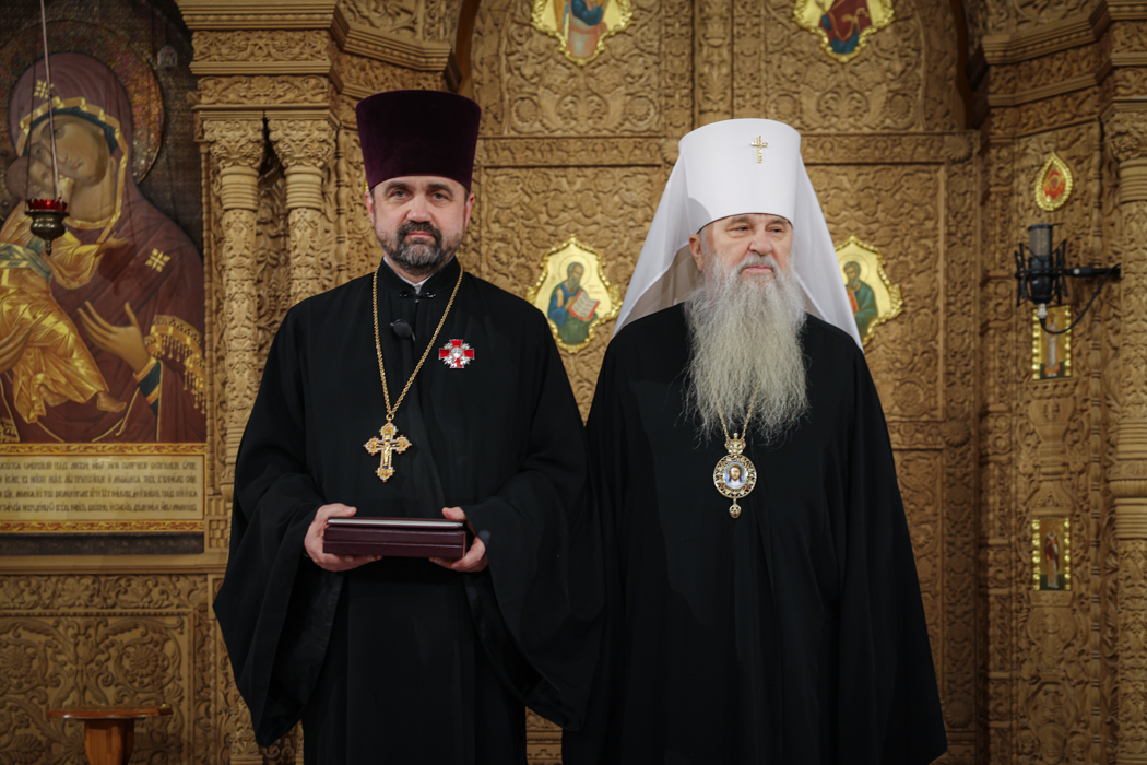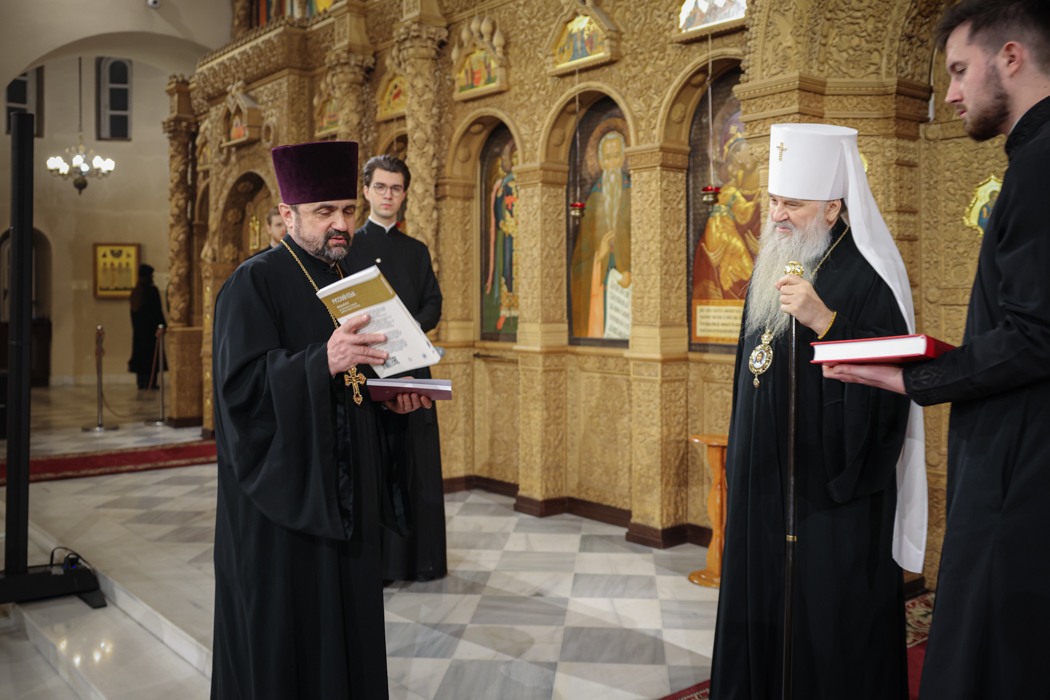 Настоятель поблагодарил митрополита за совместную молитву и высокие награды и подарил ему книги, которые вышли трудами клириков Феодоровского собора: "Евангелие-Апракос. Евангельские чтения на каждый день согласно церковным зачалам по-церковнославянски и по-русски" (новое издание), учебник русского языка для иностранных учащихся духовных школ и издания кафедры церковно-практических дисциплин.