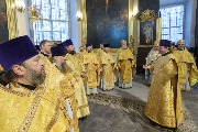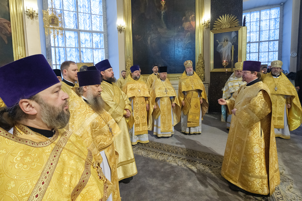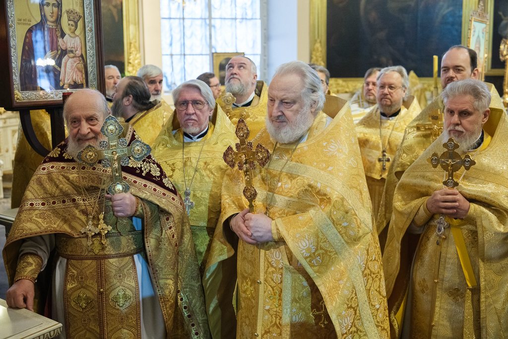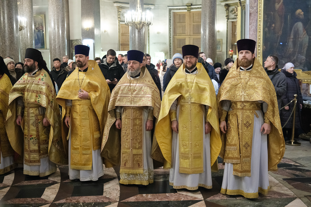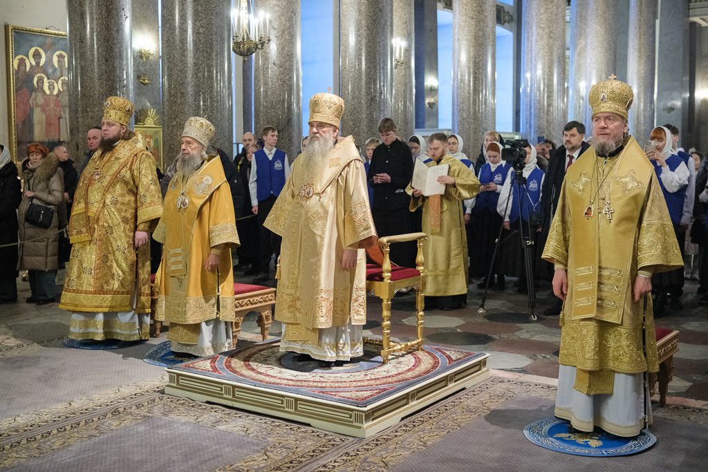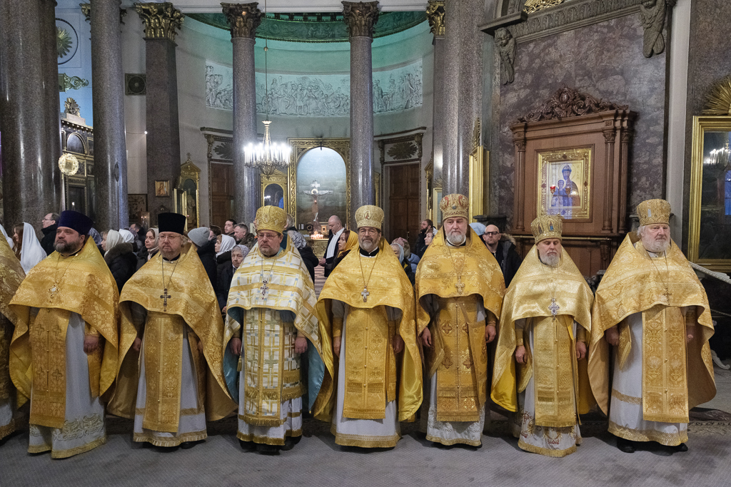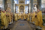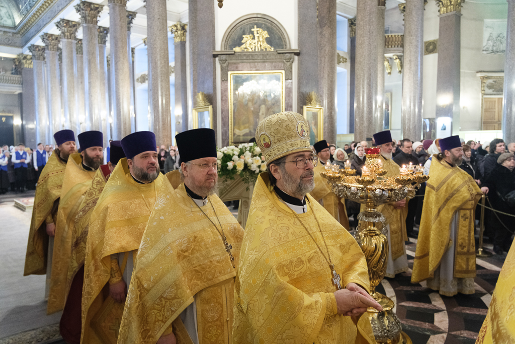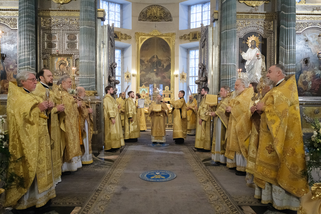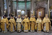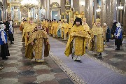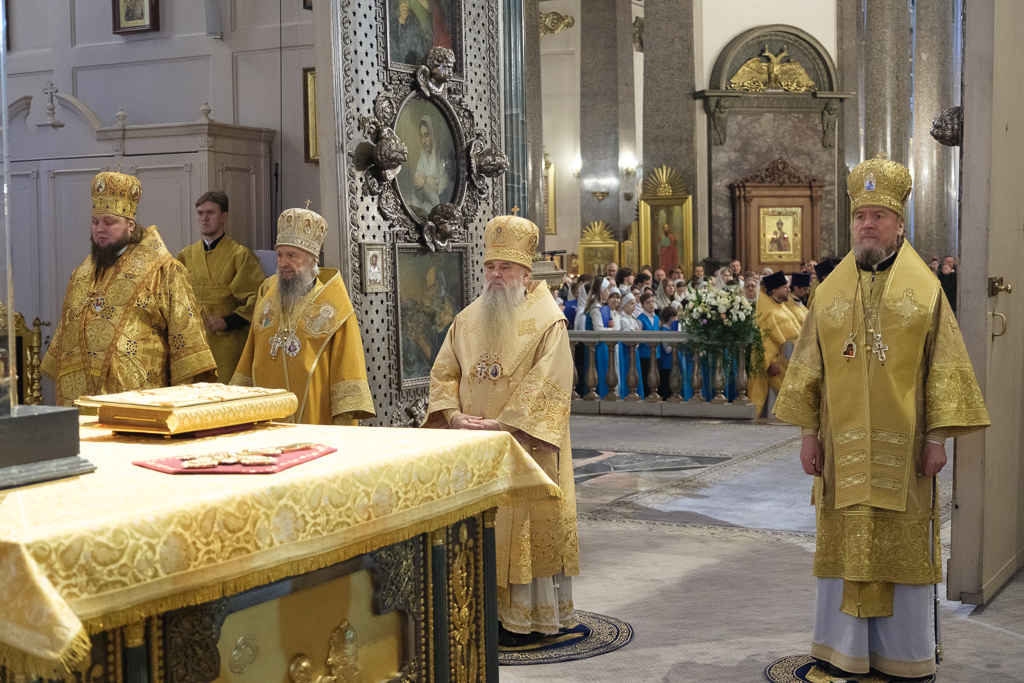 Его Высокопреосвященству сослужили митрополит Саранский и Мордовский Зиновий, епископы Нарвский и Причудский Лазарь, Петергофский Силуан, секретарь епархиального управления протоиерей Сергий Куксевич, протоиереи Александр Будников, Николай Преображенский, Геннадий Зверев, Михаил Петропавловский, архимандриты Серафим (Шкредь), Александр (Арва), ключарь собора протоиерей Андрей Герасимов, председатель приходского совета протоиерей Александр Пашков, клир собора и сонм духовенства митрополии.