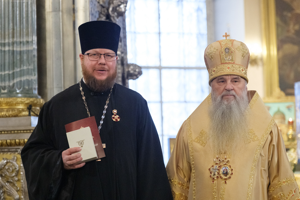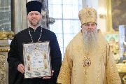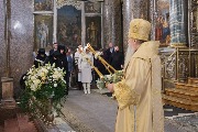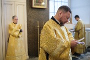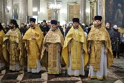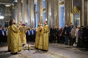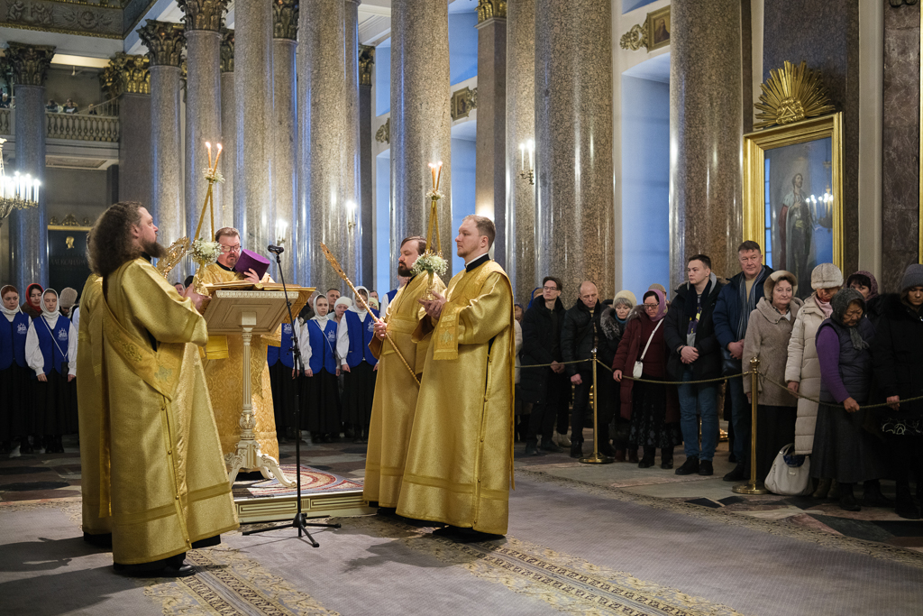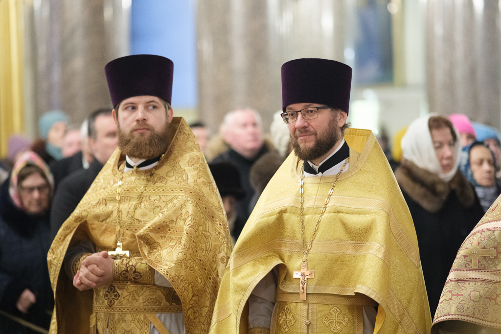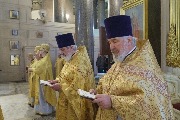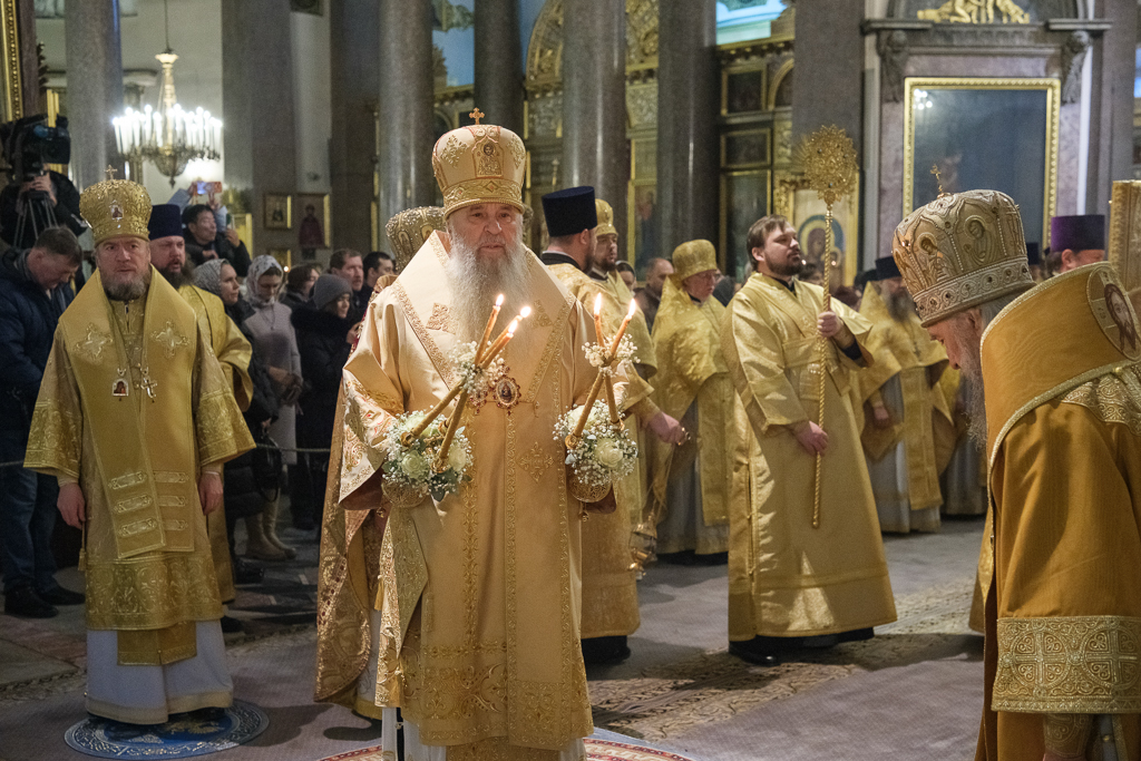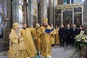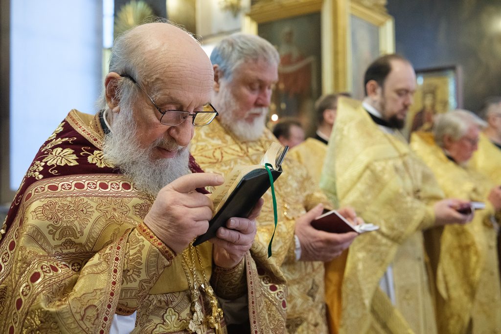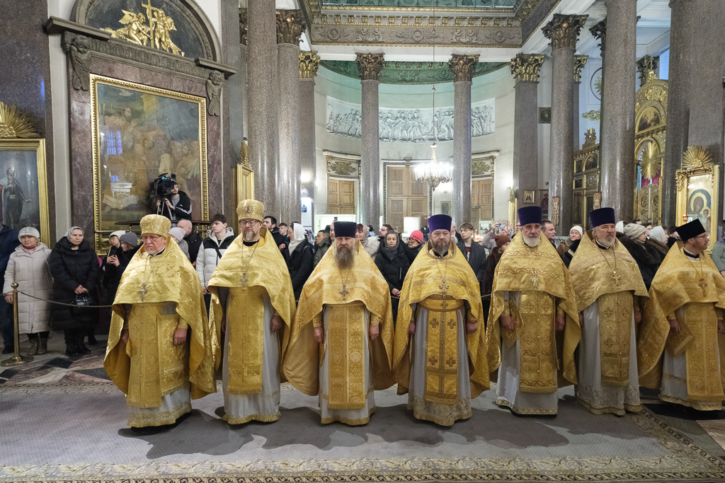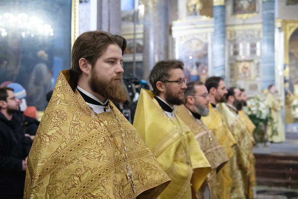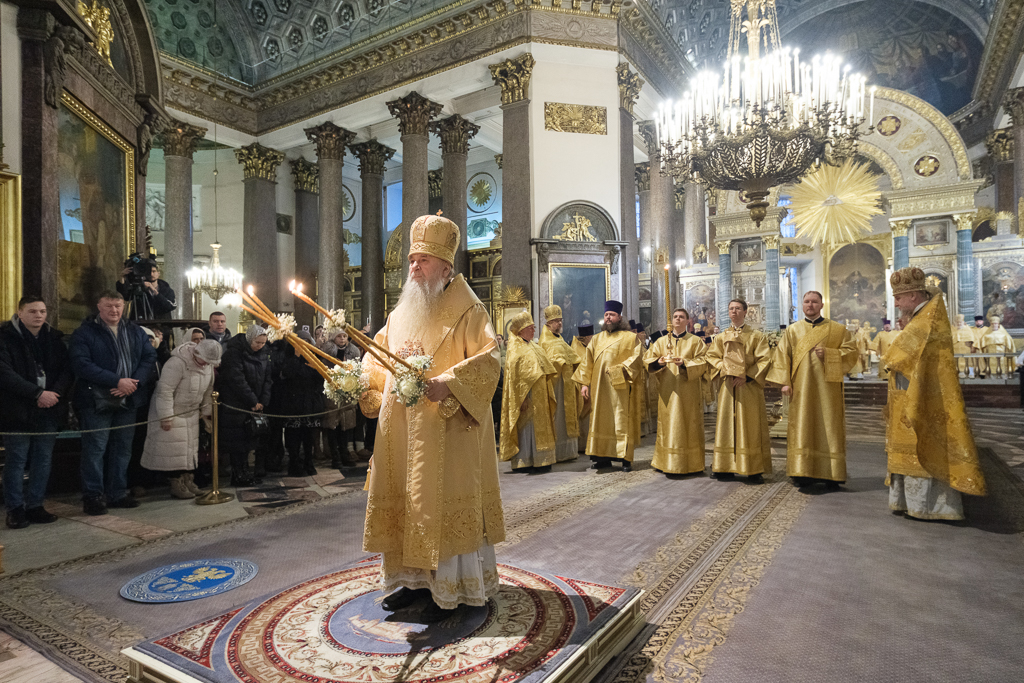 Его Высокопреосвященству сослужили митрополит Саранский и Мордовский Зиновий, епископы Нарвский и Причудский Лазарь, Петергофский Силуан, секретарь епархиального управления протоиерей Сергий Куксевич, протоиереи Александр Будников, Николай Преображенский, Геннадий Зверев, Михаил Петропавловский, архимандриты Серафим (Шкредь), Александр (Арва), ключарь собора протоиерей Андрей Герасимов, председатель приходского совета протоиерей Александр Пашков, клир собора и сонм духовенства митрополии.