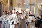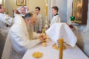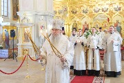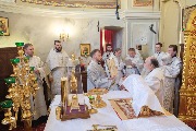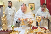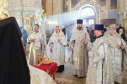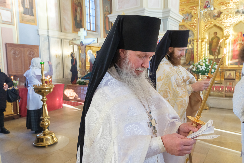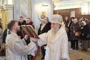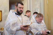 Его Высокопреосвященству сослужили cекретарь епархиального управления протоиерей Сергий Куксевич, благочинный Невского округа иерей Димитрий Малиновский, настоятель игумен Фома (Василенко) с клиром и другие священнослужители.