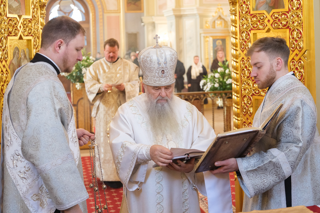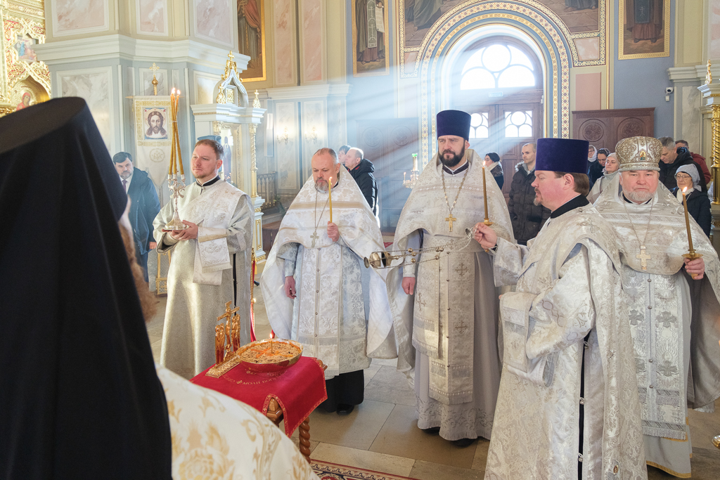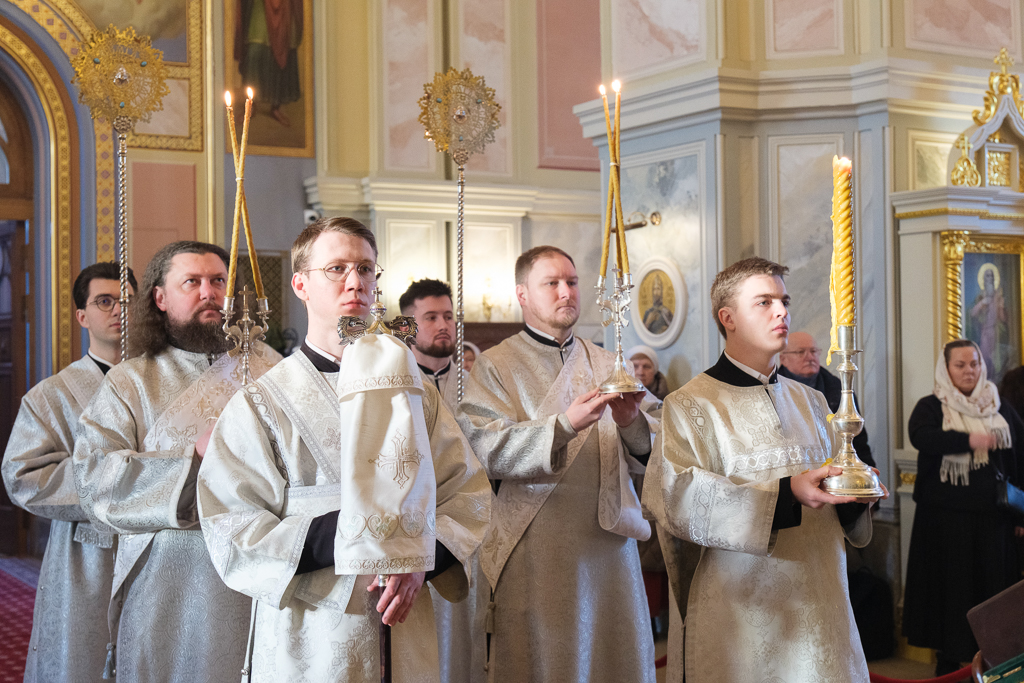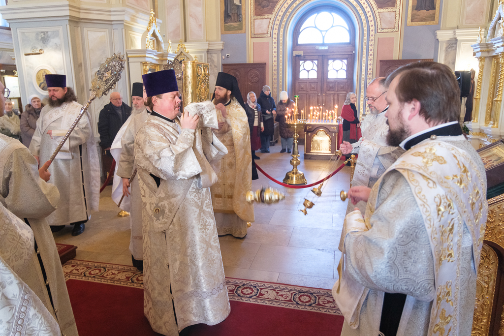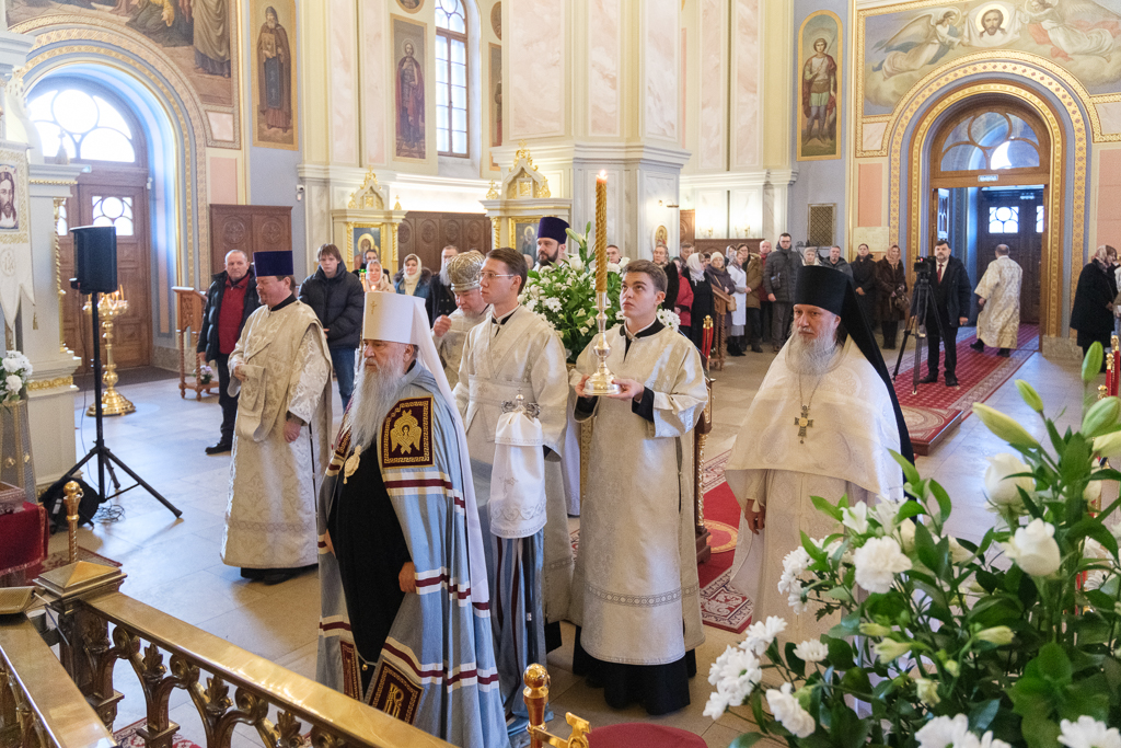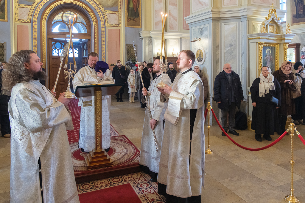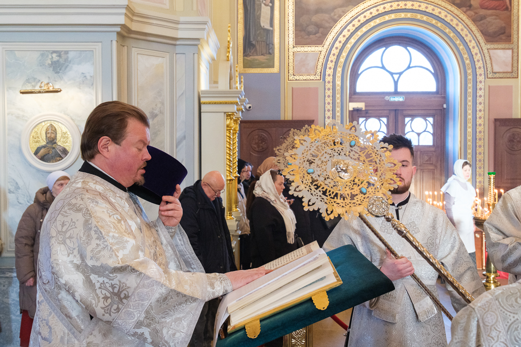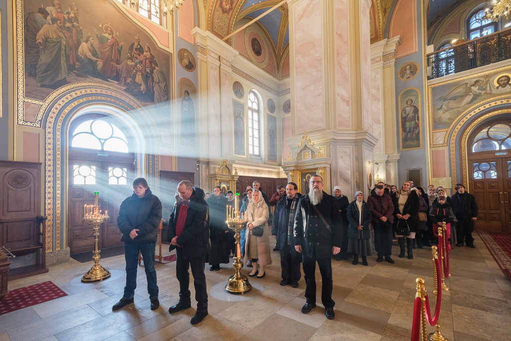 Во Вселенскую родительскую субботу, 14 февраля, митрополит Санкт-Петербургский и Ладожский Варсонофий совершил Божественную литургию в храме Святой Троицы на Октябрьской набережной.
