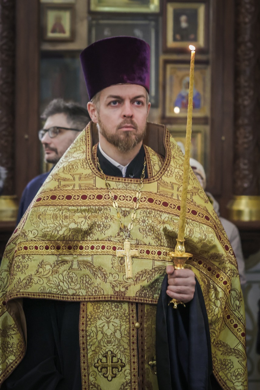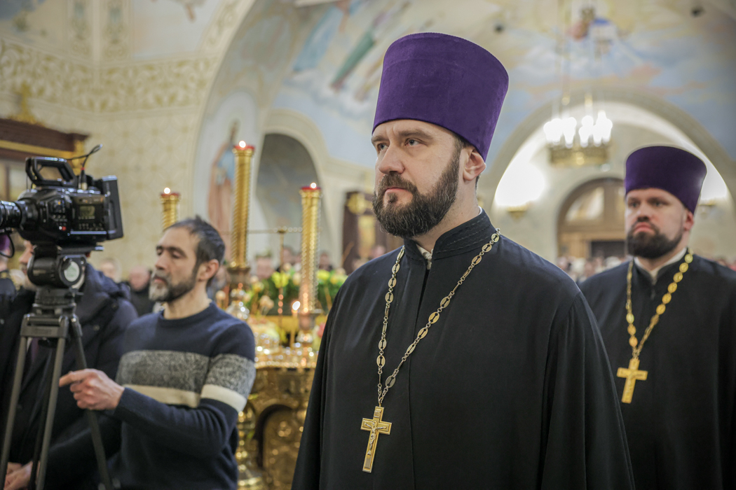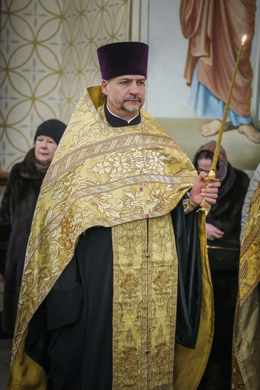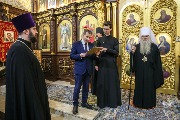 Начальник городского отдела по связям с религиозными объединениями Владимир Иванов зачитал поздравление настоятелю с днем рождения от губернатора Александра Беглова.