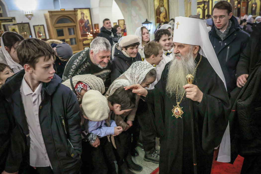 В канун Недели сыропустной, воспоминания Адамова изгнания, Прощеного воскресенья, 21 февраля, митрополит Санкт-Петербургский и Ладожский Варсонофий совершил Всенощное бдение в храме святого апостола Петра в Веселом поселке.
